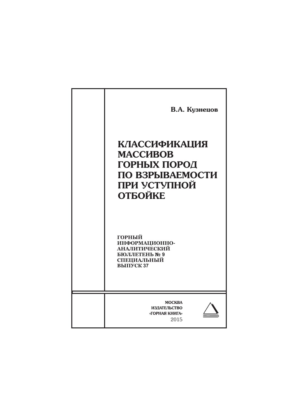 Классификация массивов горных пород по взрываемости при уступной отбойке. Отдельная статья: Горный информационно-аналитический бюллетень (научно-технический журнал)
