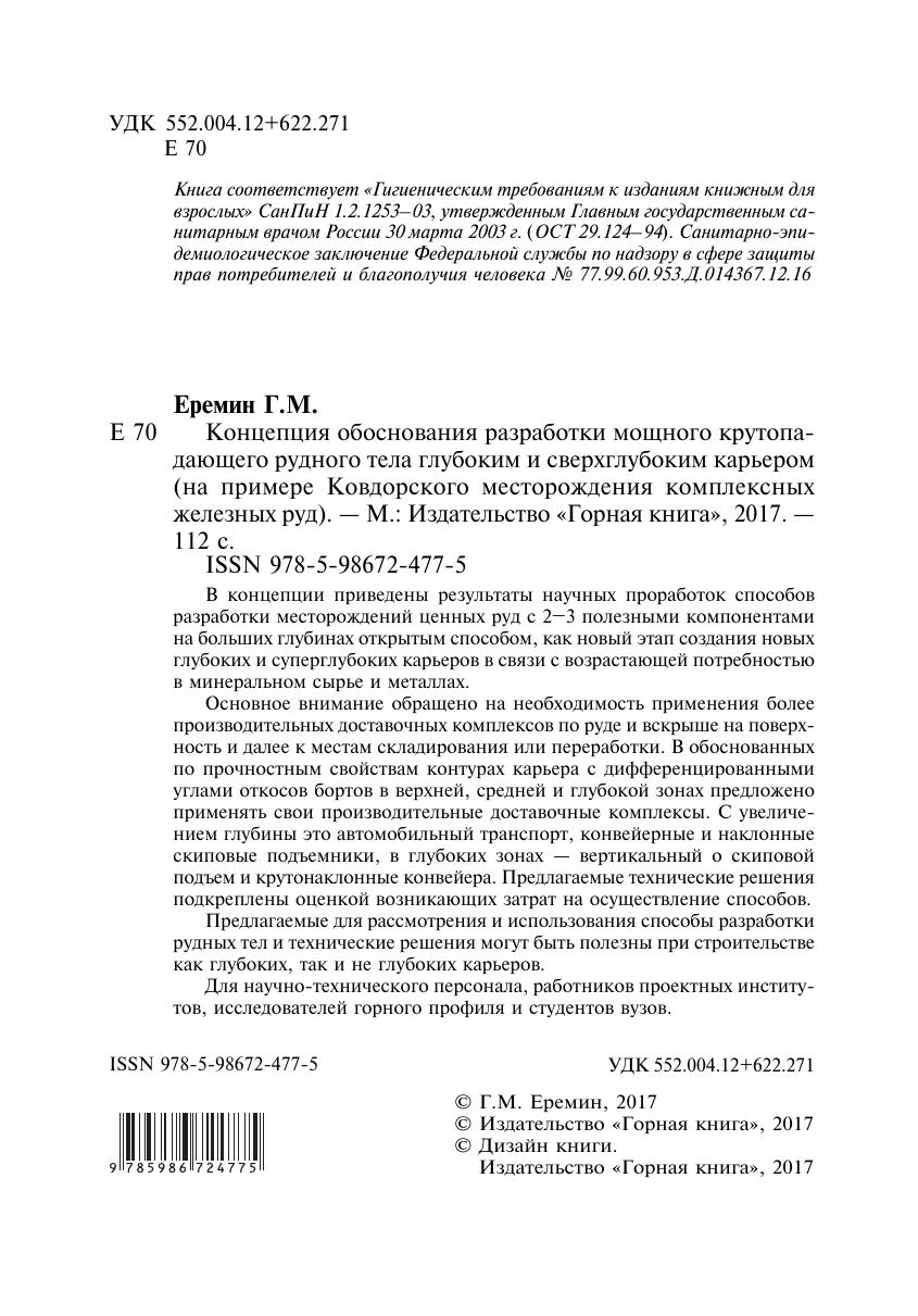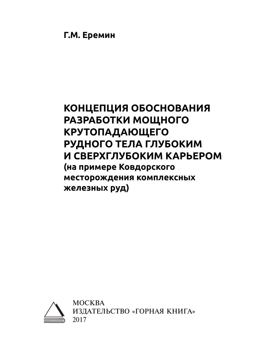 Концепция обоснования разработки мощного крутопадающего рудного тела глубоким и сверхглубоким карьером (на примере Ковдорского месторождения комплексных железных руд)
