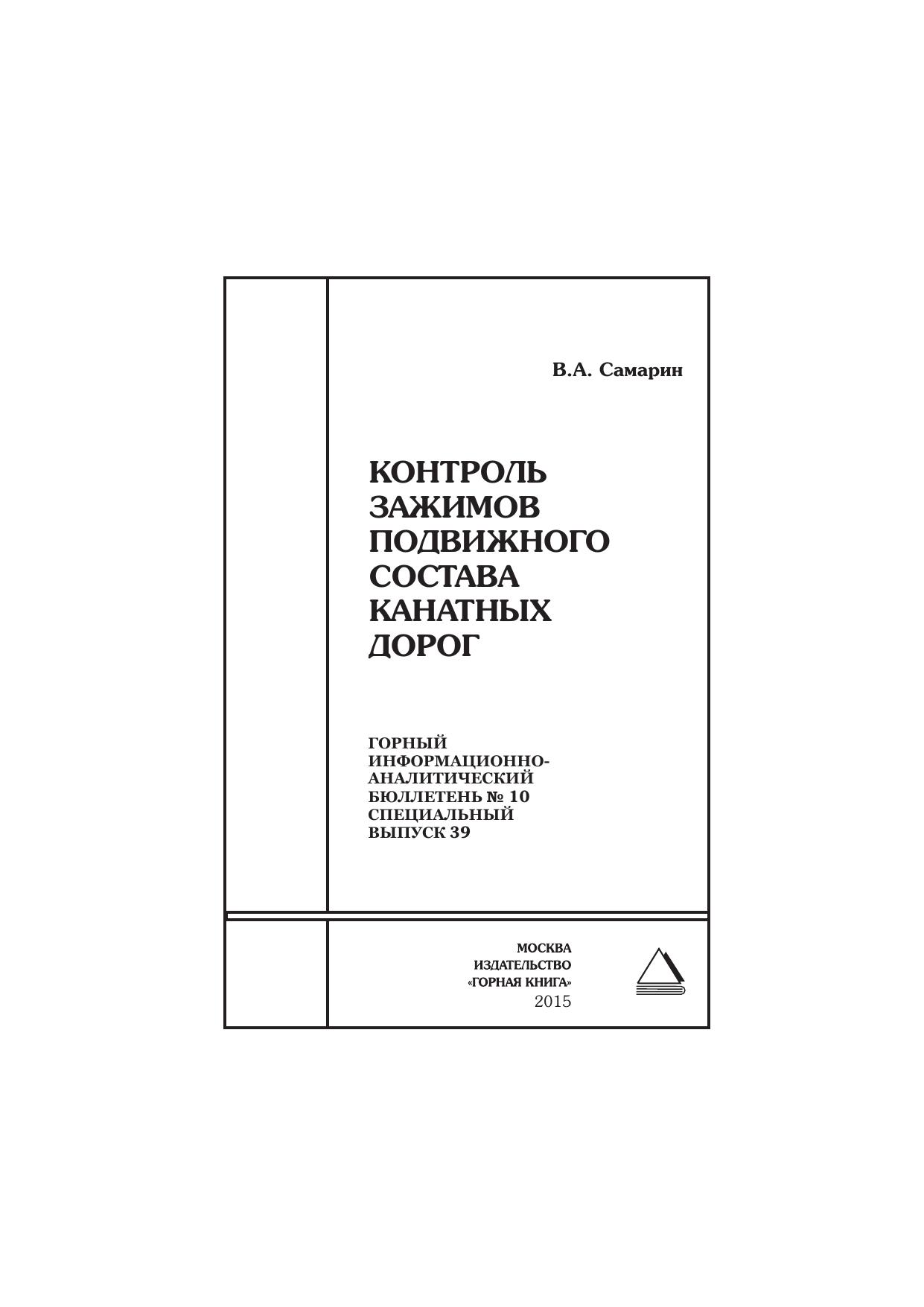 Контроль зажимов подвижного состава канатных дорог: Отдельные статьи. Горный информационно-аналитический бюллетень (научно-технический журнал)