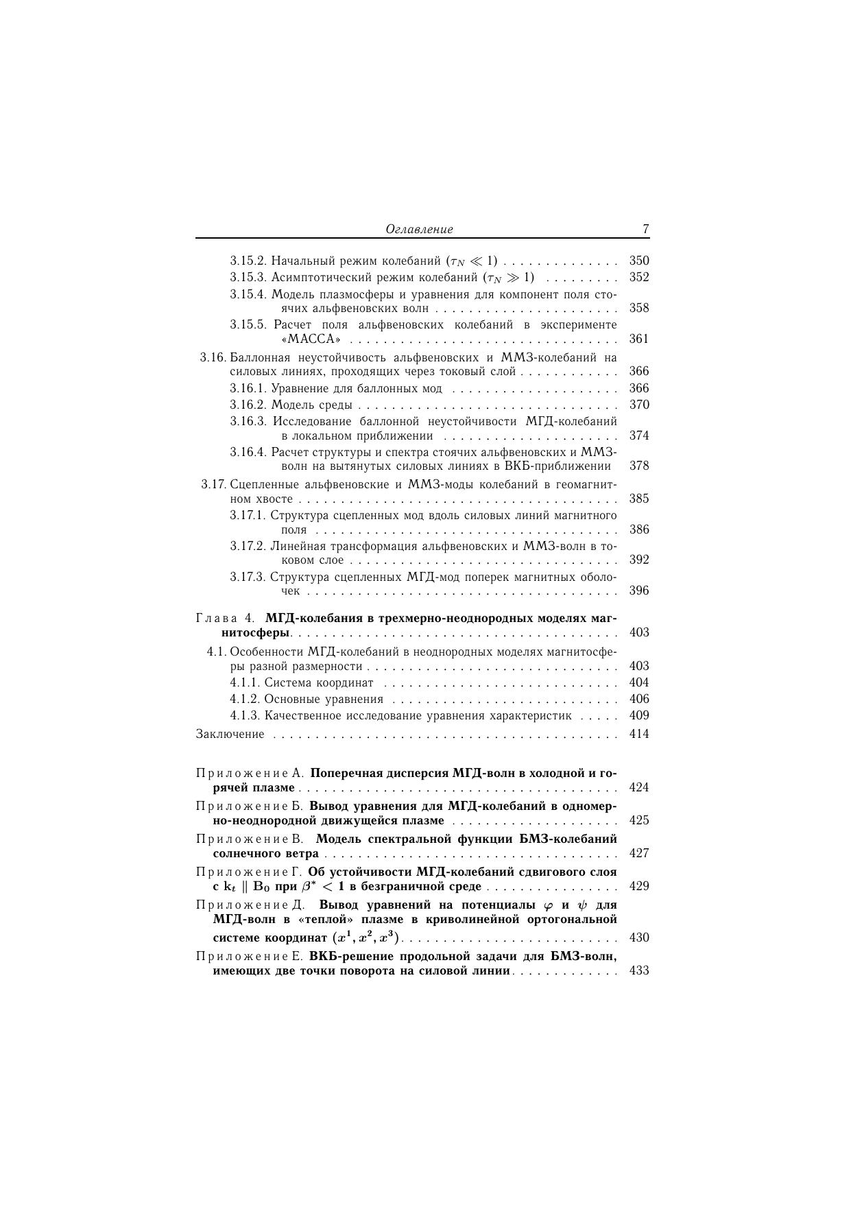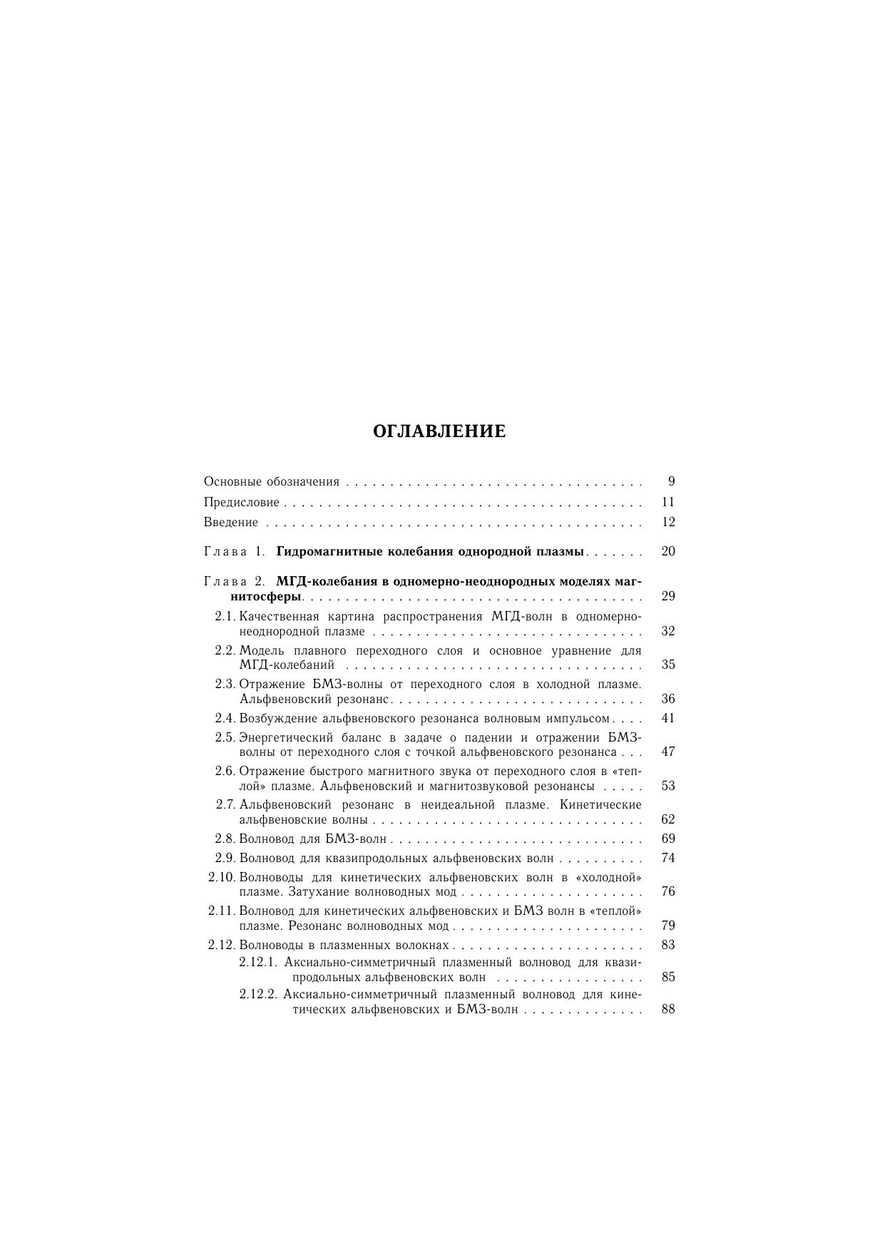 В монографии дано систематическое изложение теории МГД-колебаний неоднородной магнитосферной плазмы. Оно построено по принципу постепенного усложнения используемых моделей среды. Последовательно рассматриваются МГД-колебания в однородной плазме, а также в одно-, двух- и трехмерно неоднородных моделях магнитосферы. Исследованы особенности процессов генерации и распространения МГД колебаний в моделях среды, параметры которых максимально приближены к реальности. Рассмотренные в монографии волновые процессы дают в совокупности общую картину МГД-колебаний магнитосферы.