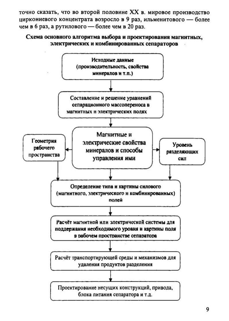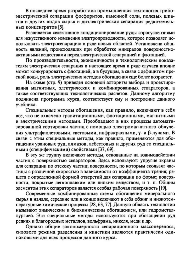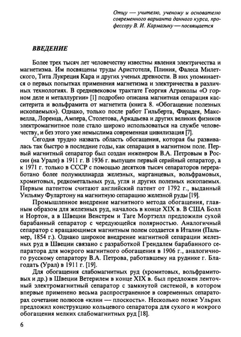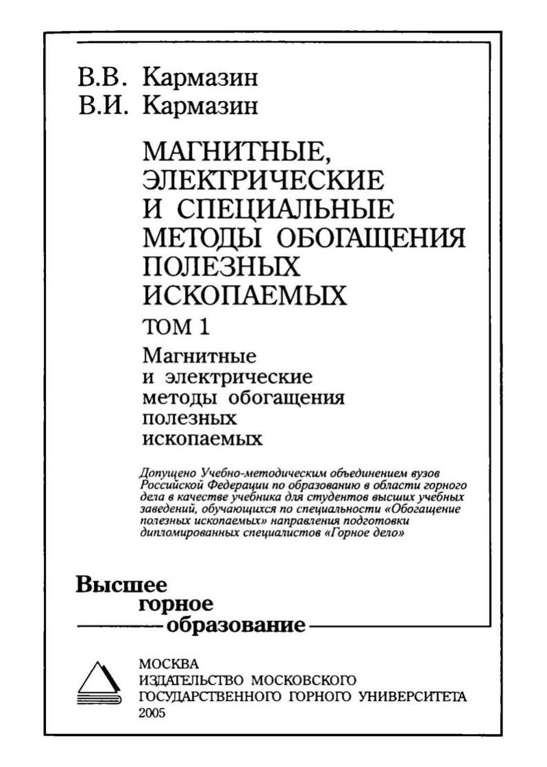 Изложены современные теоретические представления о разделении минералов в магнитных, электрических и комбинированных полях. Рассмотрены процессы и аппараты основных, подготовительных и вспомогательных методов магнитного и электрического обогащения. Практика магнитных и электрических методов обогащения излагается на основе опыта отечественных и зарубежных обогатительных фабрик, использующих магнитные и комбинированные (с гравитационными, электрическими, специальными и другими методами) технологии. Для студентов вузов, обучающихся по специальности «Обогащение полетных ископаемых» направления подготовки дипломированных специалистов «Горное дело».