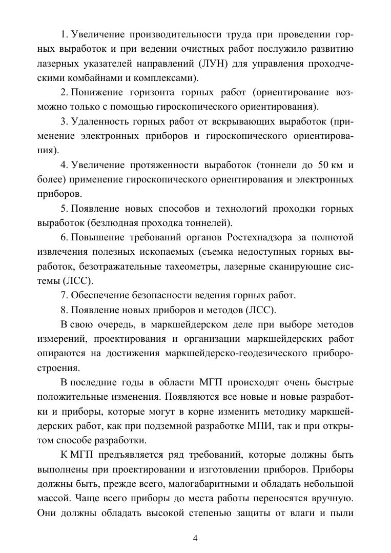Маркшейдерские приборы представлены в данном пособии маркшейдерским гирокомпасом МВТ-2 и эхолокаторами для съемки глубоких взрывных скважин. Подробно рассмотрено устройство гирокомпаса и методика проведения гироскопического ориентирования. Пользуясь данным описанием методики ориентирования с примером заполнения журнала гироскопического ориентирования, позволит, самостоятельно изучить этот сложный процесс. Из регламентных работ с МВТ-2 рассмотрена методика определения добротности торсионного подвеса гирокомпаса.