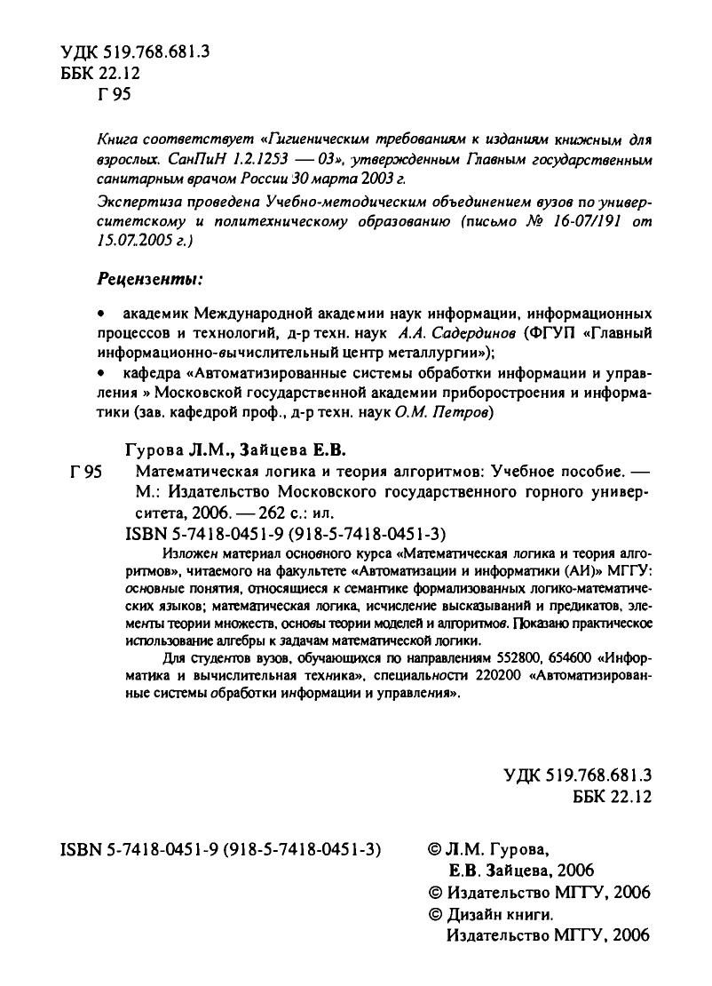 Гриф: Допущено Учебно-методическим объединением вузов по университетскому политехническому образованию в качестве учебного пособия для студентов высших учебных заведений, обучающихся по направлениям 552800, 654600 «Информатика и вычислительная техника», специальности 220200 «Автоматизированные системы обработки информации и управления».