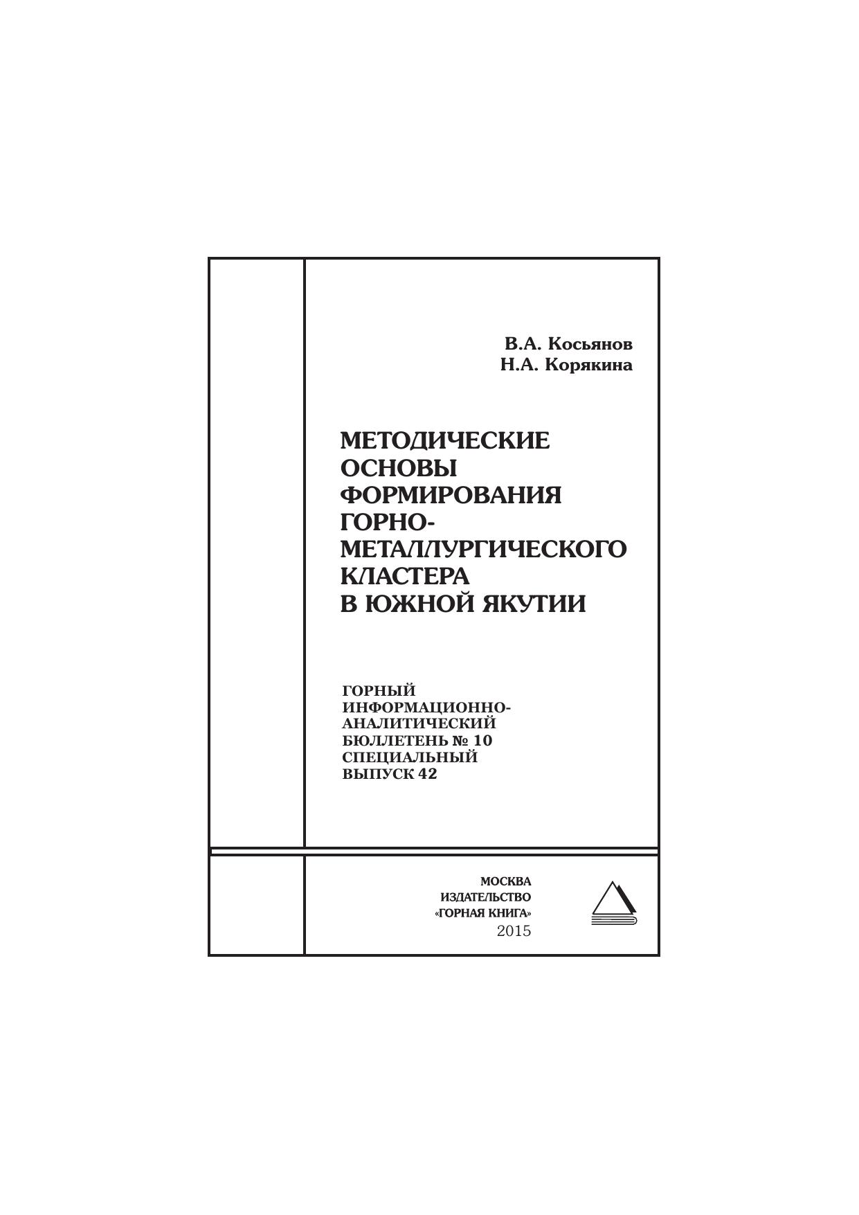 Методические основы формирования горно-металлургического кластера в Южной Якутии: Горный информационно-аналитический бюллетень (научно-технический журнал)