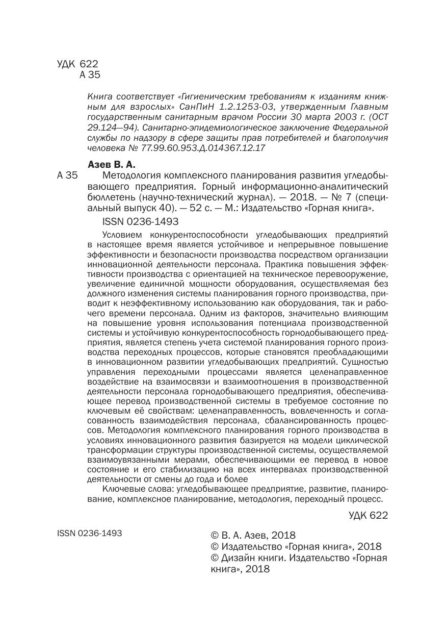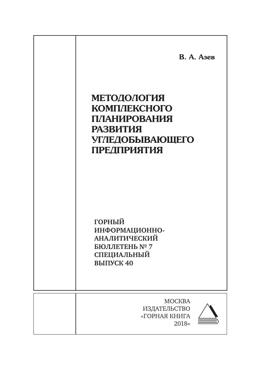Методология комплексного планирования развития угледобывающего предприятия. Горный информационно-аналитический бюллетень (научно-технический журнал). № 7