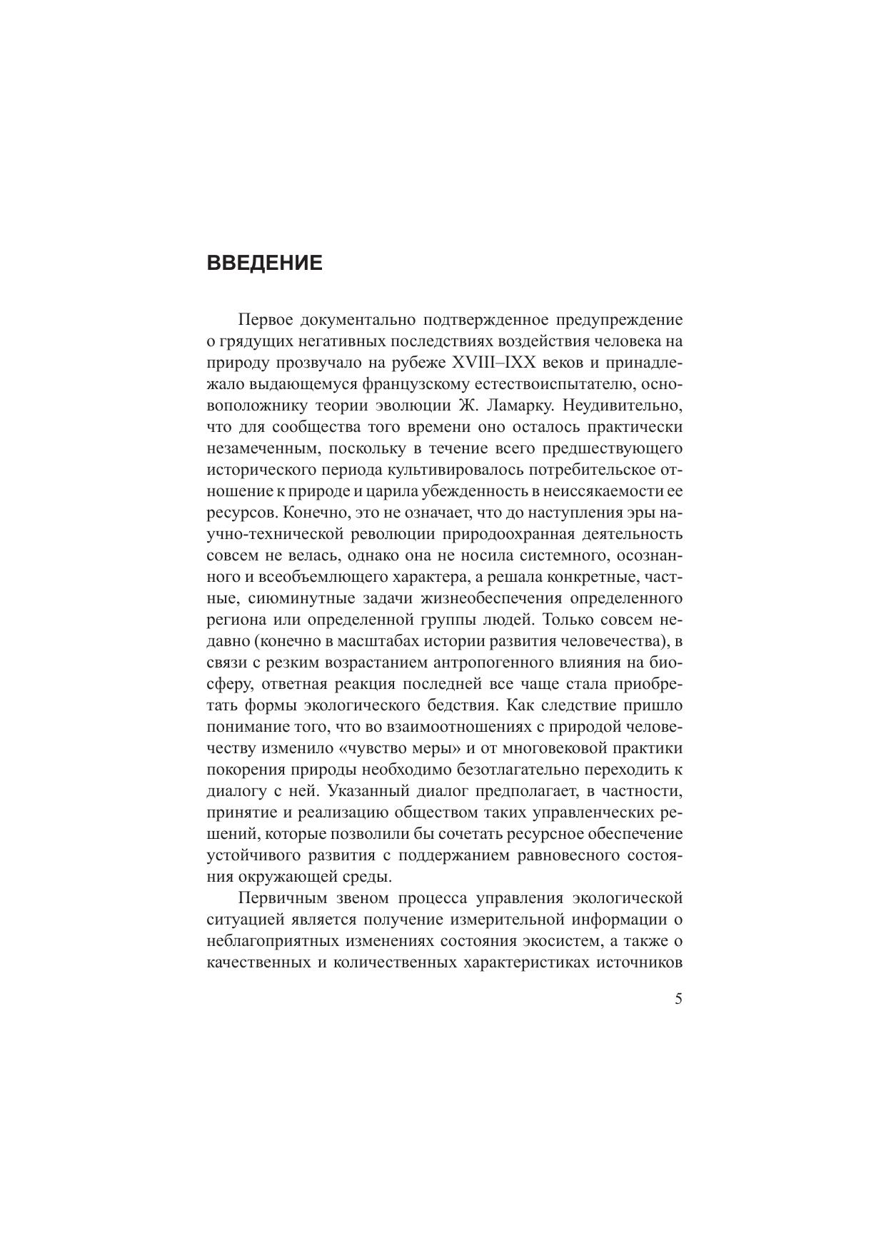 Приведены обобщенные сведения об объектах охраны окружающей среды и их основных загрязнениях. Рассмотрены задачи, организационные и методические вопросы экологического мониторинга. Подробно изложены физические принципы и характеристики основных методов и технических средств контроля состояния атмосферного воздуха, водных систем и почв, а также качественной и количественной оценки таких специфических видов загрязнения, как акустическое, вибрационное, радиационное, термическое, электростатическое и электромагнитное. A3. Вартанов — канд. техн. наук, доц. (кафедра ФТКП МГГУ), А.Д. Рубан — чл.-корр. РАН, д-р техн. наук (ИПКОН РАН), В.Л. Шкуратник — зав. кафедрой, д-р техн. наук, проф. (кафедра ФТКП МГГУ). Для студентов вузов, обучающихся по специальности «Физические процессы горного или нефтегазового производства» направления подготовки «Горное дело» и по специальности «Инженерная защита окружающей среды» направления подготовки «Защита окружающей среды». Может быть полезен студентам других специальностей экологической направленности и специалистам, практическая деятельность которых связана с вопросами природопользования и инженерной защиты окружающей среды.