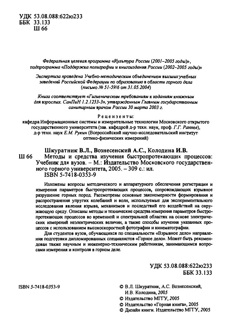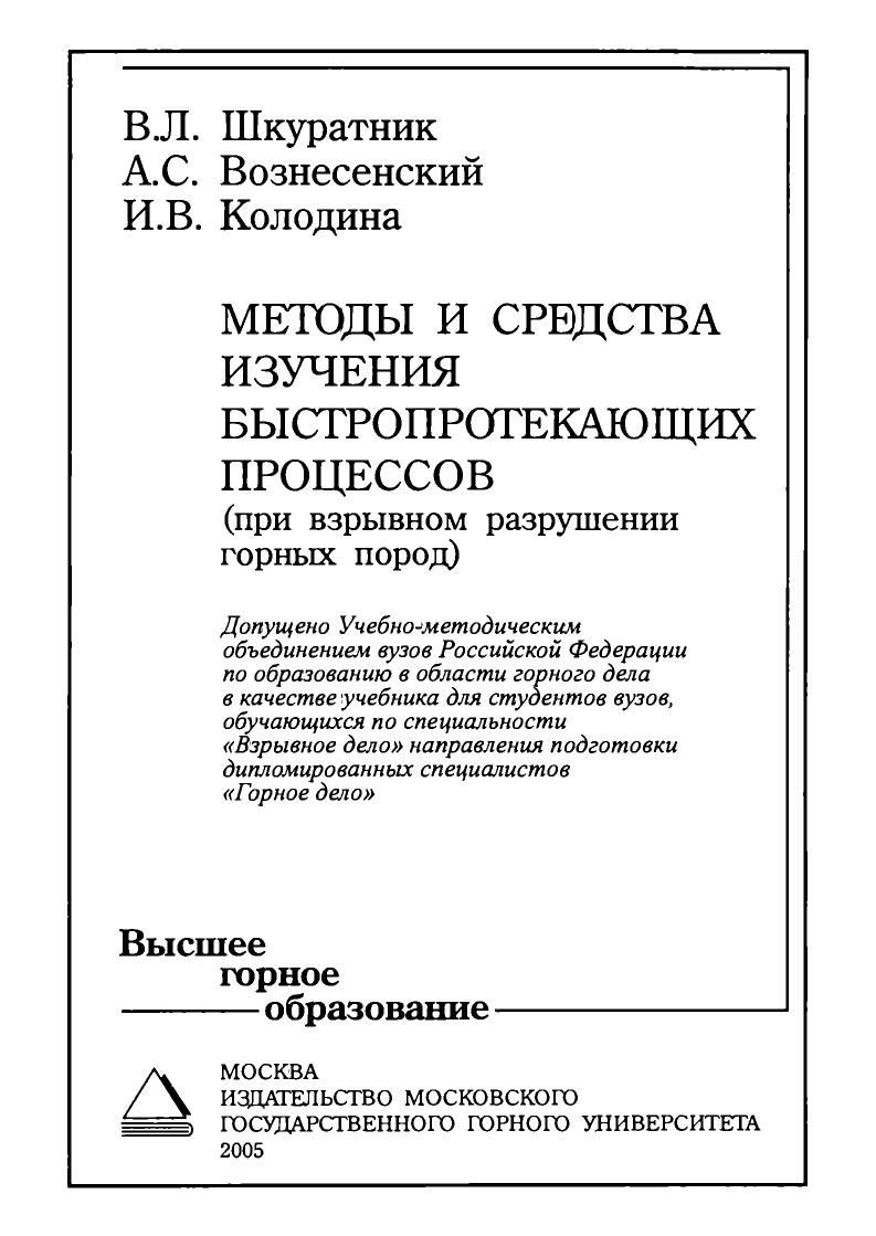 Гриф: Допущено Учебно-методическим объединением вузов Российской Федерации по образованию в области горного дела в качестве учебника для студентов вузов, обучающихся по специальности «Взрывное дело» направления подготовки дипломированных специалистов «Горное дело».