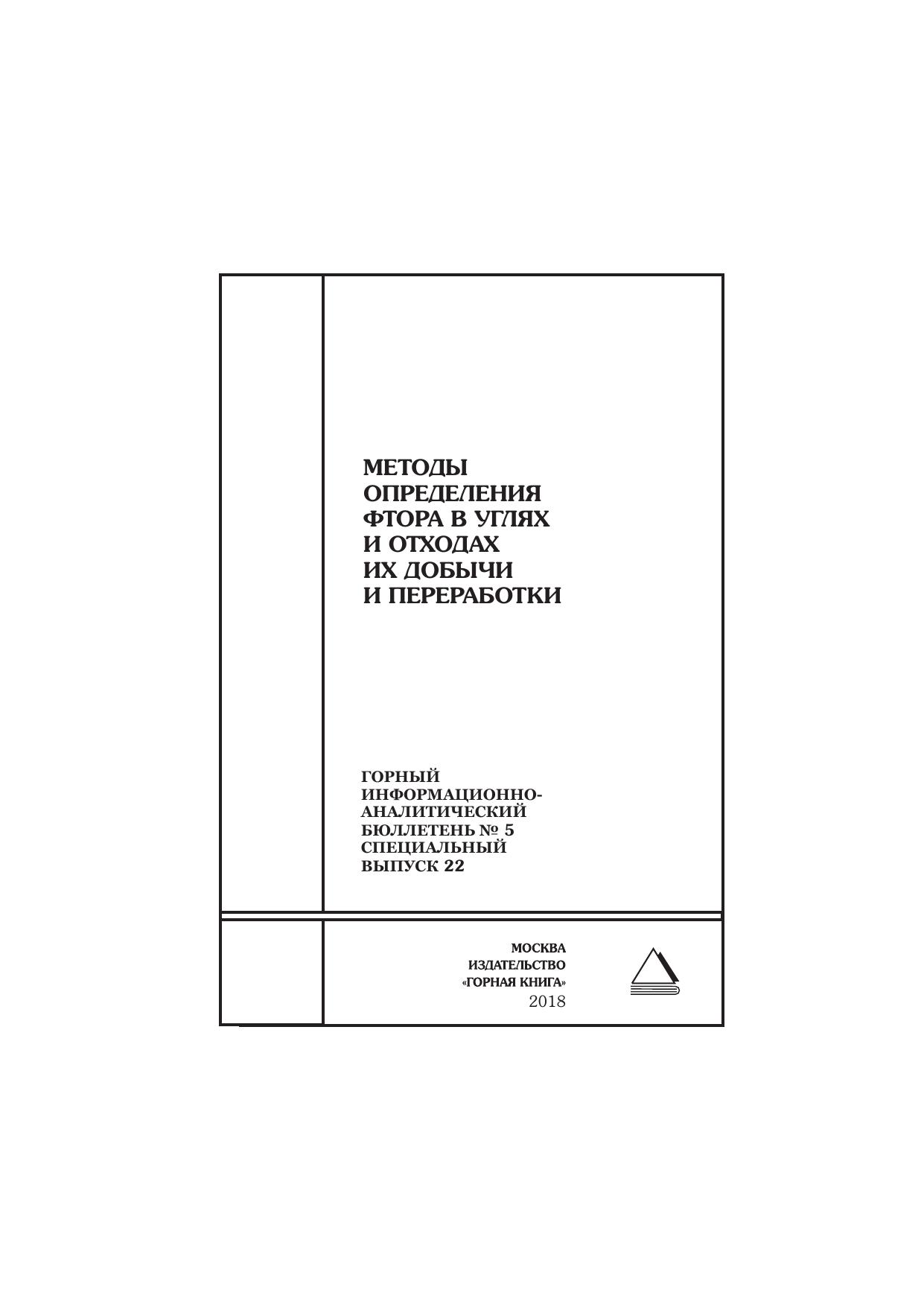 Методы определения фтора в углях и отходах их добычи и переработки. Горный информационно-аналитический бюллетень (научно-технический журнал). № 5
