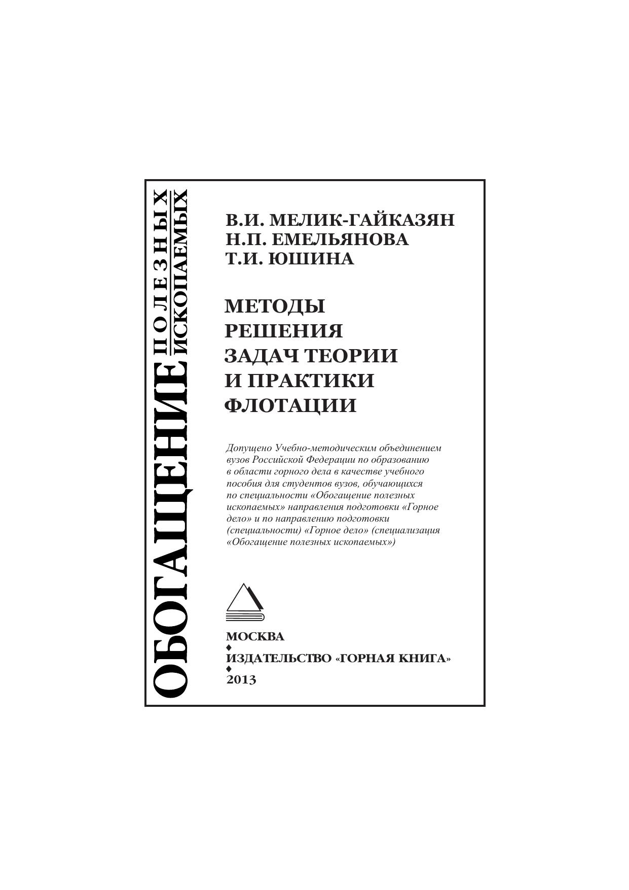 Методы решения задач теории и практики флотации: Учебное пособие