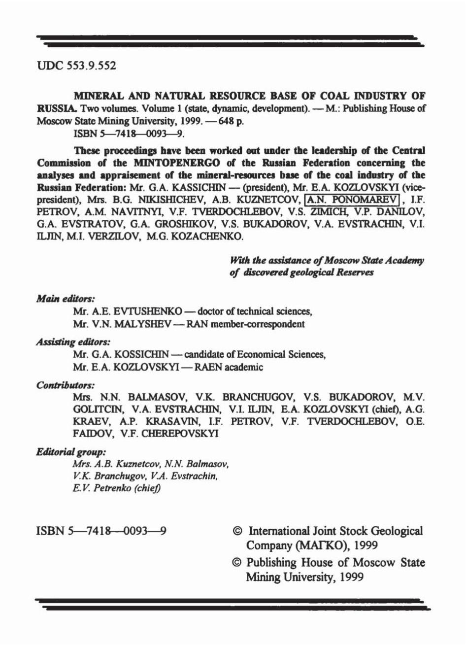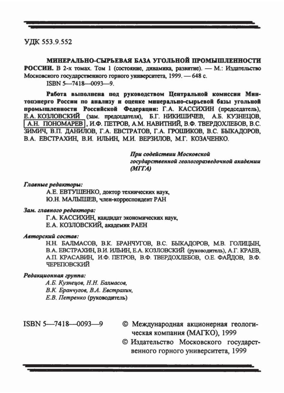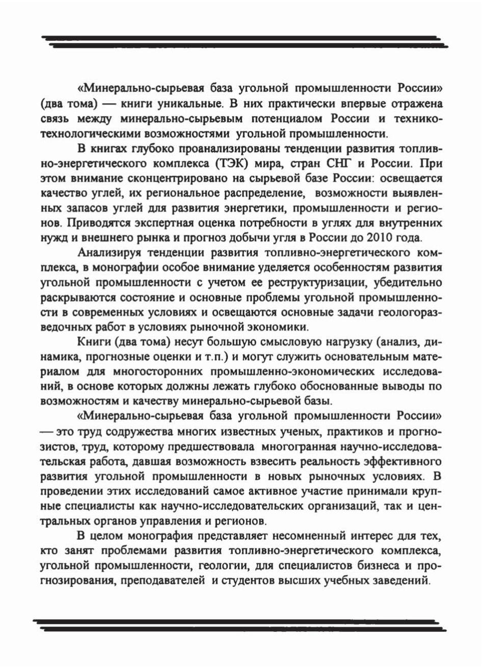 Минерально-сырьевая база угольной промышленности. В 2-х томах. Т.1