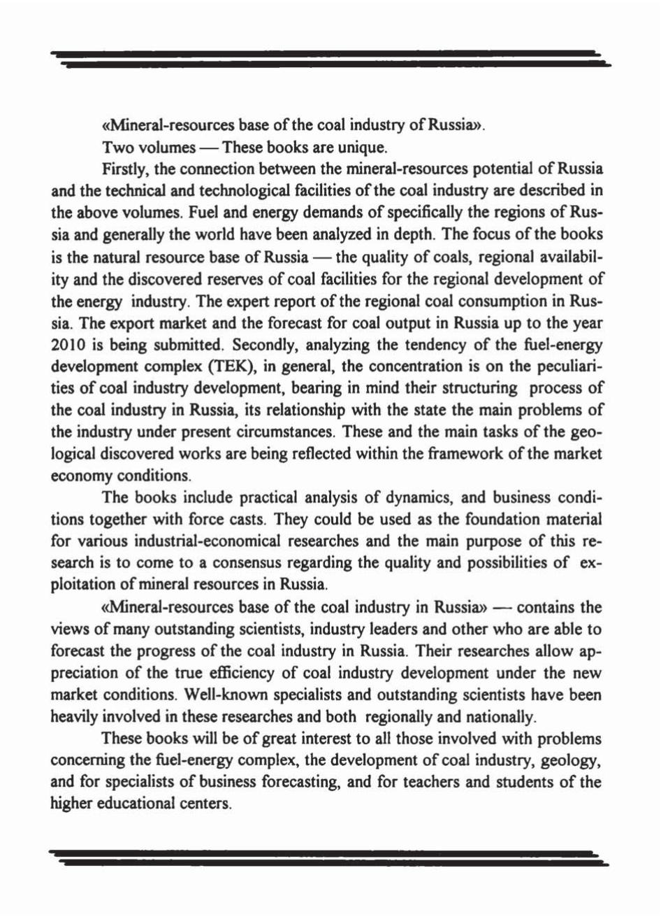 Впервые отражена связь между минерально-сырьевым потенциалом России и технико-технологическими возможностямиуголной промышленности. Проанализированы тенденции развития топливно-энергетическогокомплекса мира, СНГ и России.