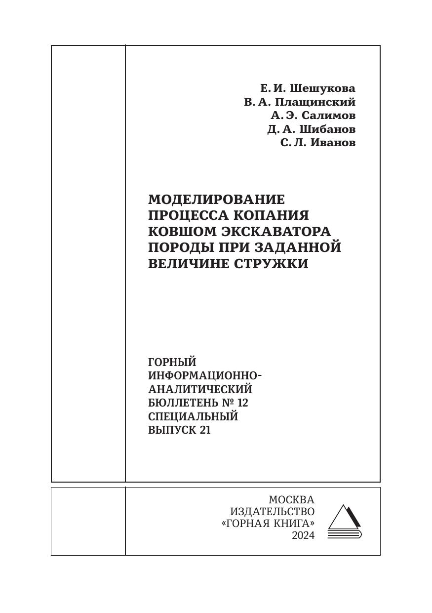 Моделирование процесса копания ковшом экскаватора породы при заданной величине стружки: горный информационно-аналитический бюллетень № 12. Специальный выпуск 21