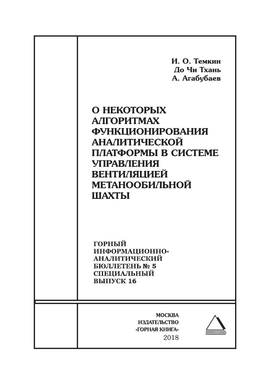 О некоторых алгоритмах функционирования аналитической платформы в системе управления вентиляцией метанообильной шахты. Горный информационно-аналитический бюллетень (научно-технический журнал). № 5