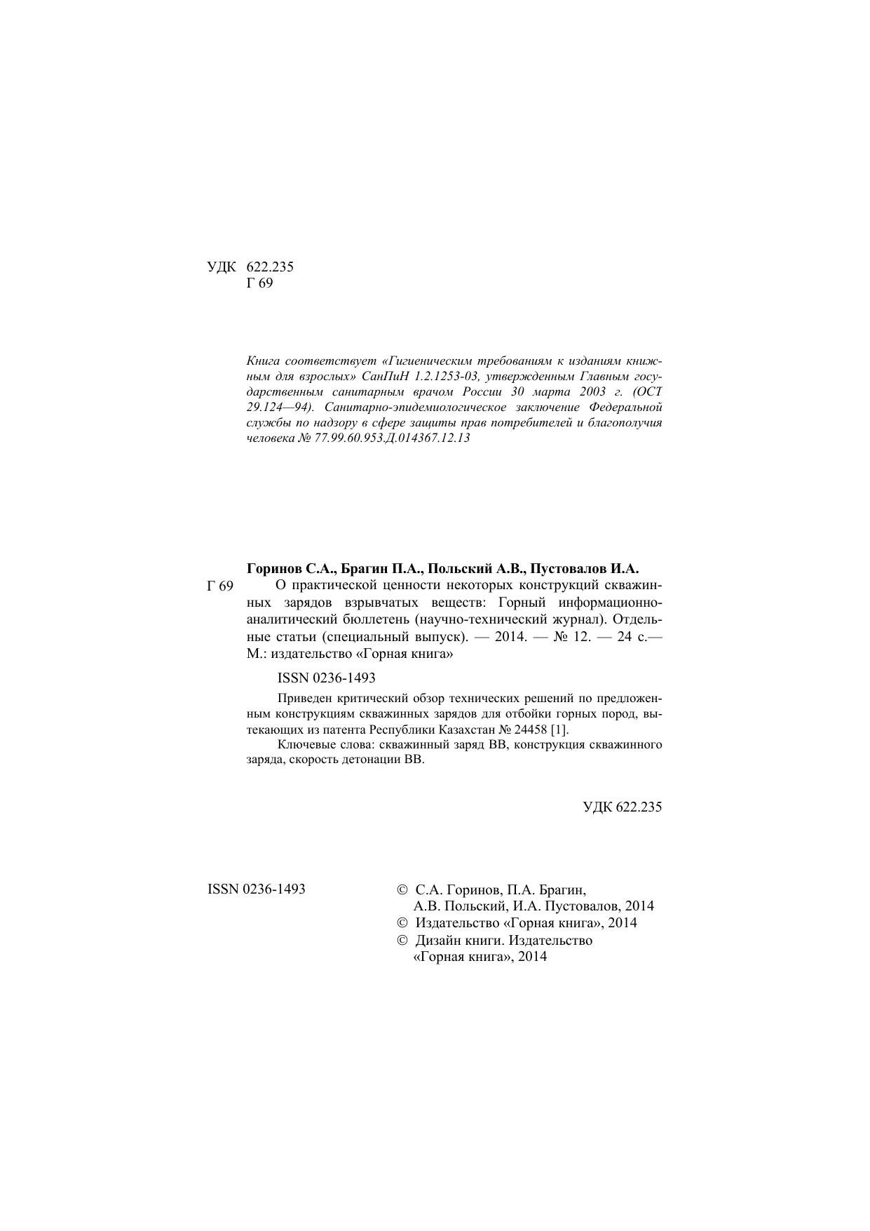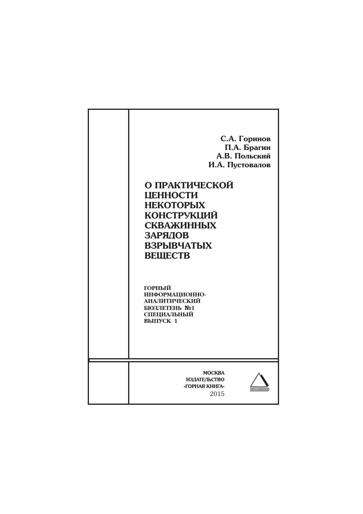 О практической ценности некоторых конструкций скважинных зарядов взрывчатых веществ: Горный информационно-аналитический бюллетень (научно-технический журнал)