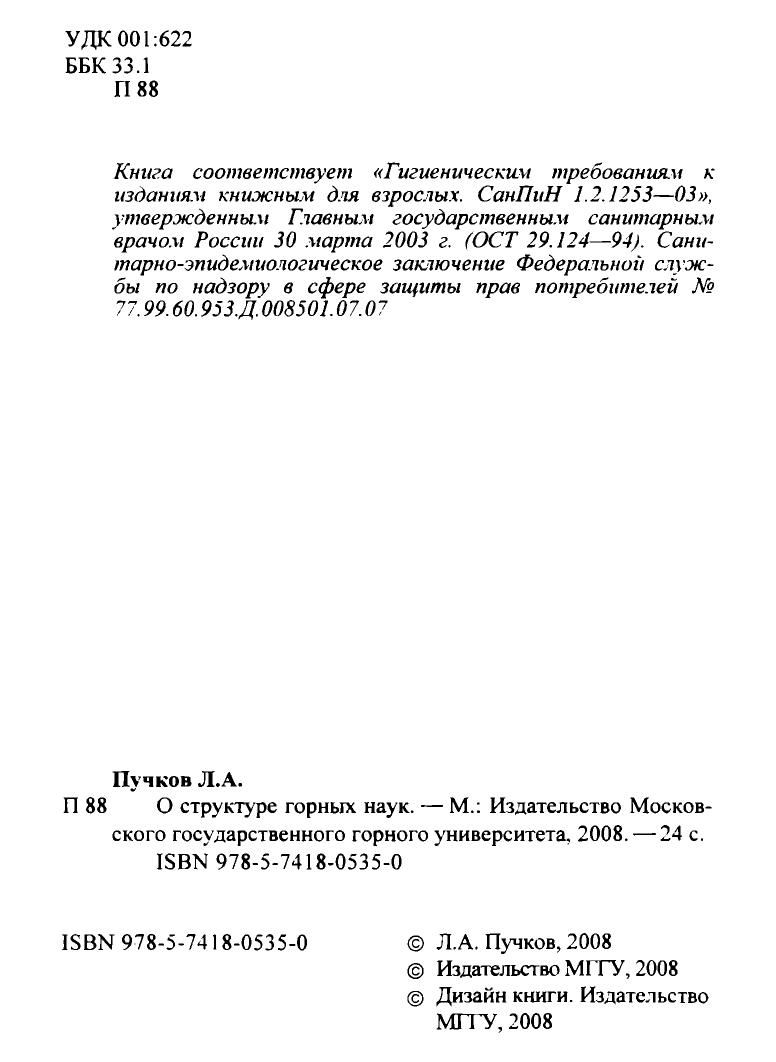 Приведены структуры фундоментальных,инженерных (технологических) горных наук и наук внешней сферы.