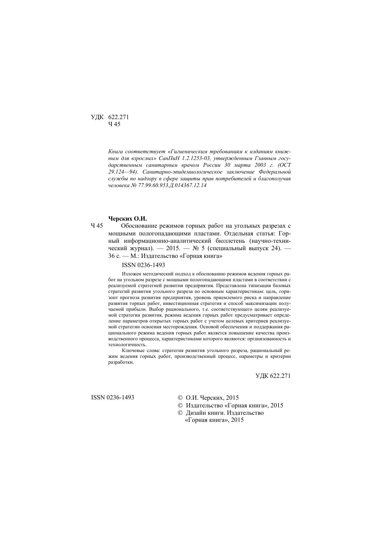 Обоснование режимов горных работ на угольных разрезах с мощными пологопадающими пластами. Отдельная статья: Горный информационно-аналитический бюллетень (научно-технический журнал)