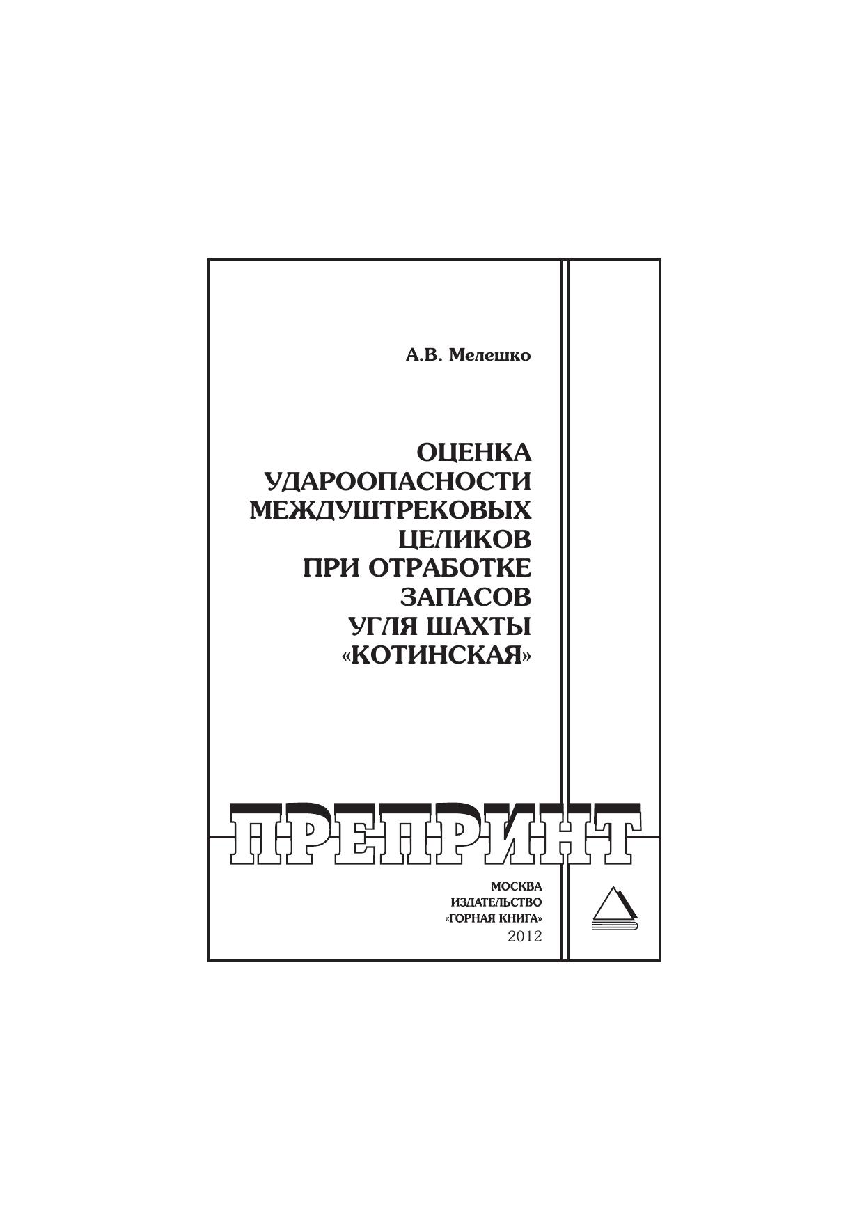 Оценка удароопасности междуштрековых целиков при отработке запасов угля шахты «котинская»