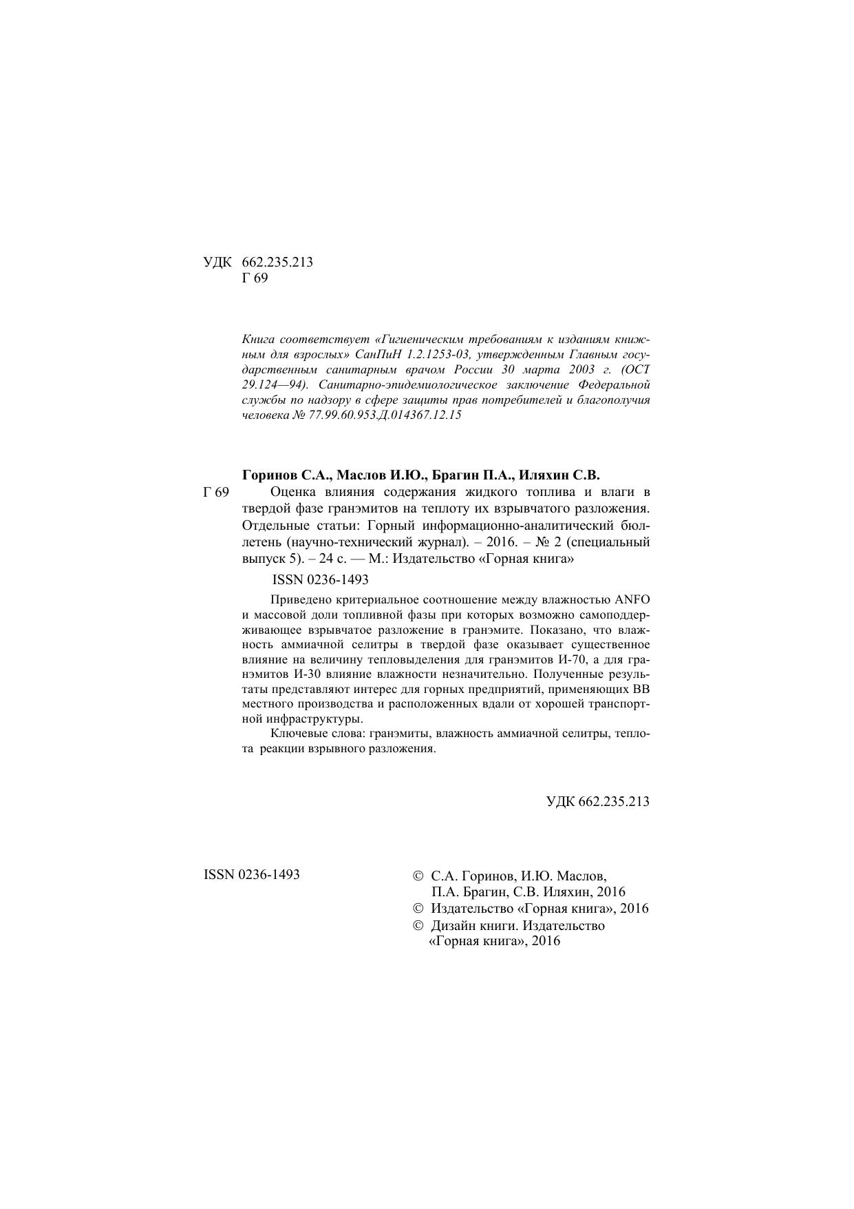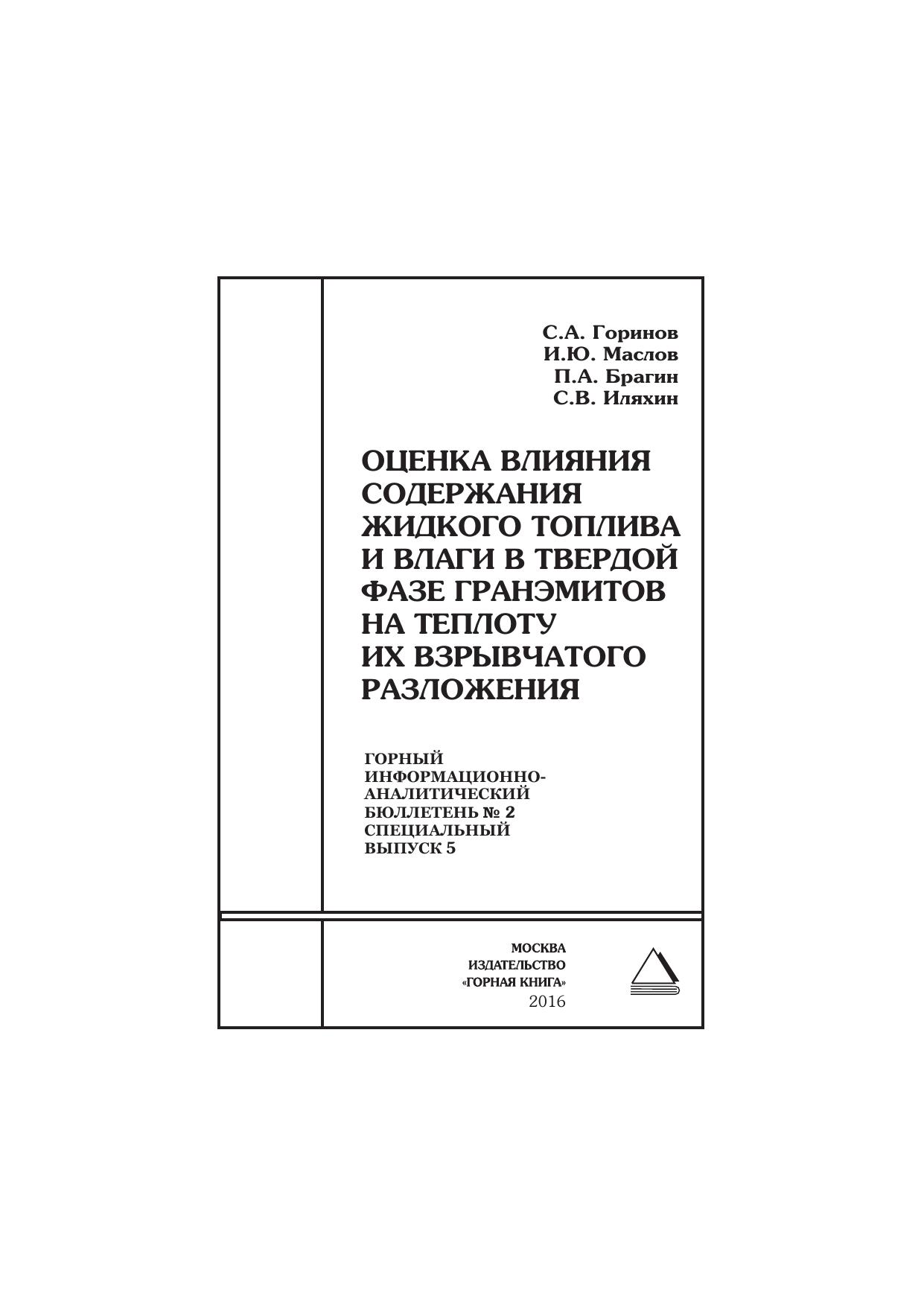 Оценка влияния содержания жидкого топлива и влаги в твердой фазе гранэмитов на теплоту их взрывчатого разложения. Отдельные статьи: Горный информационно-аналитический бюллетень (научно-технический журнал).