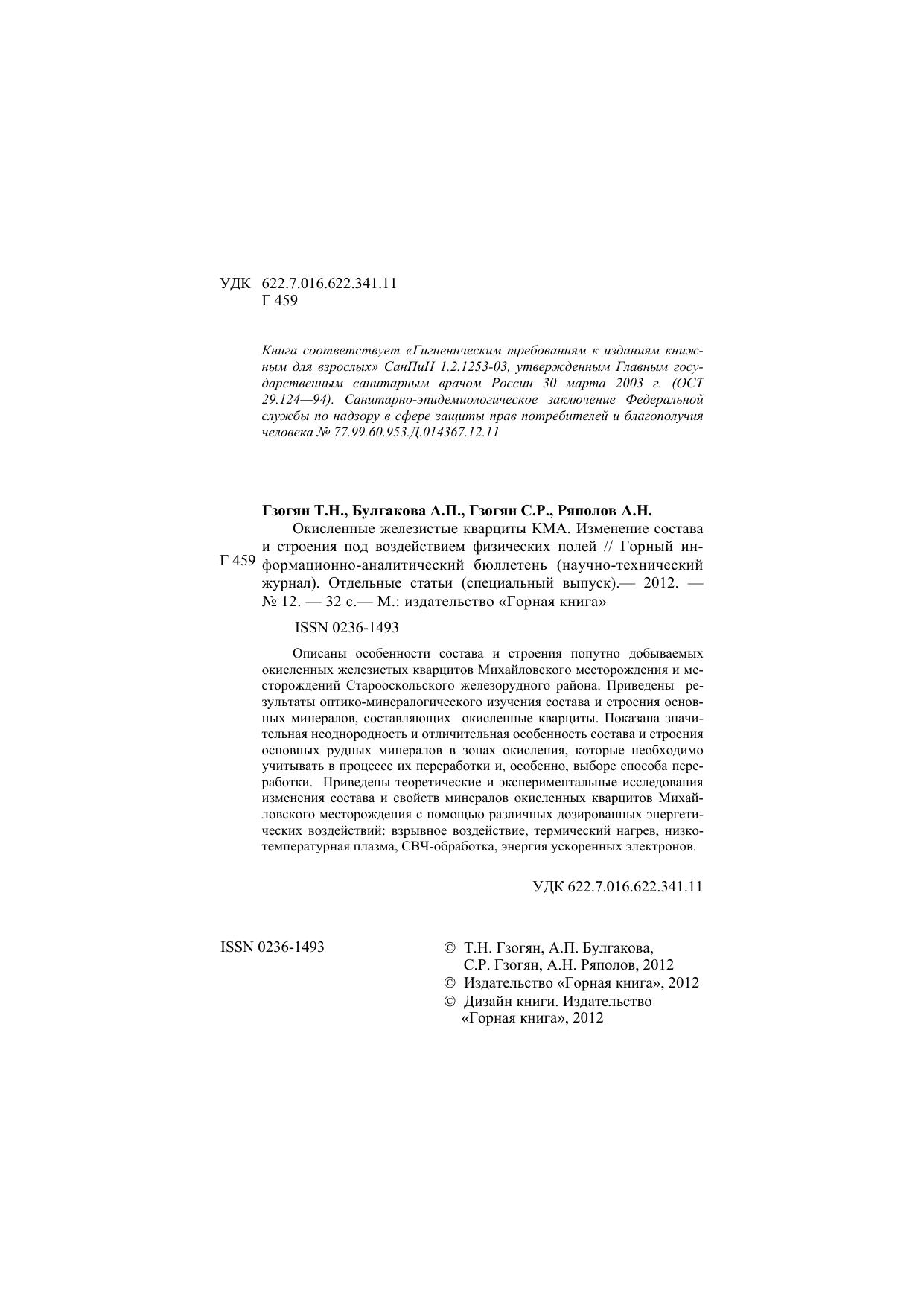 ISBN 0236-1493; 2012 г.