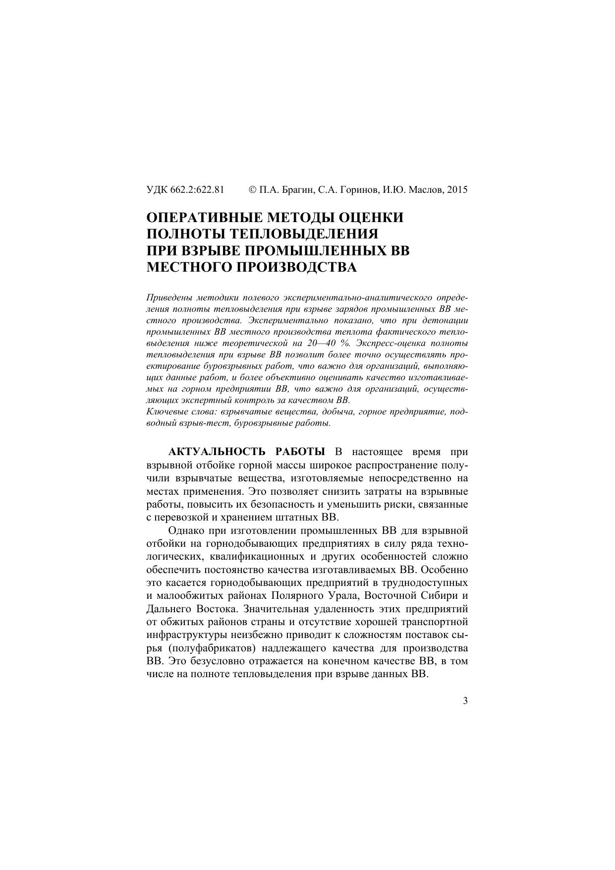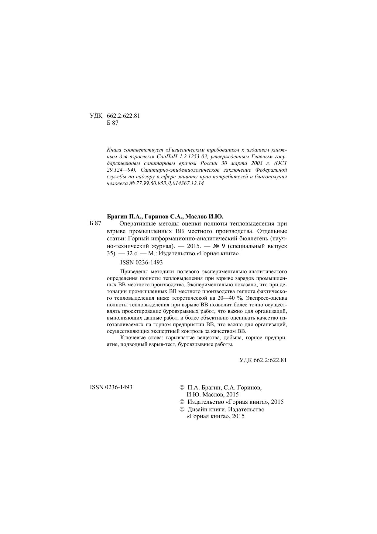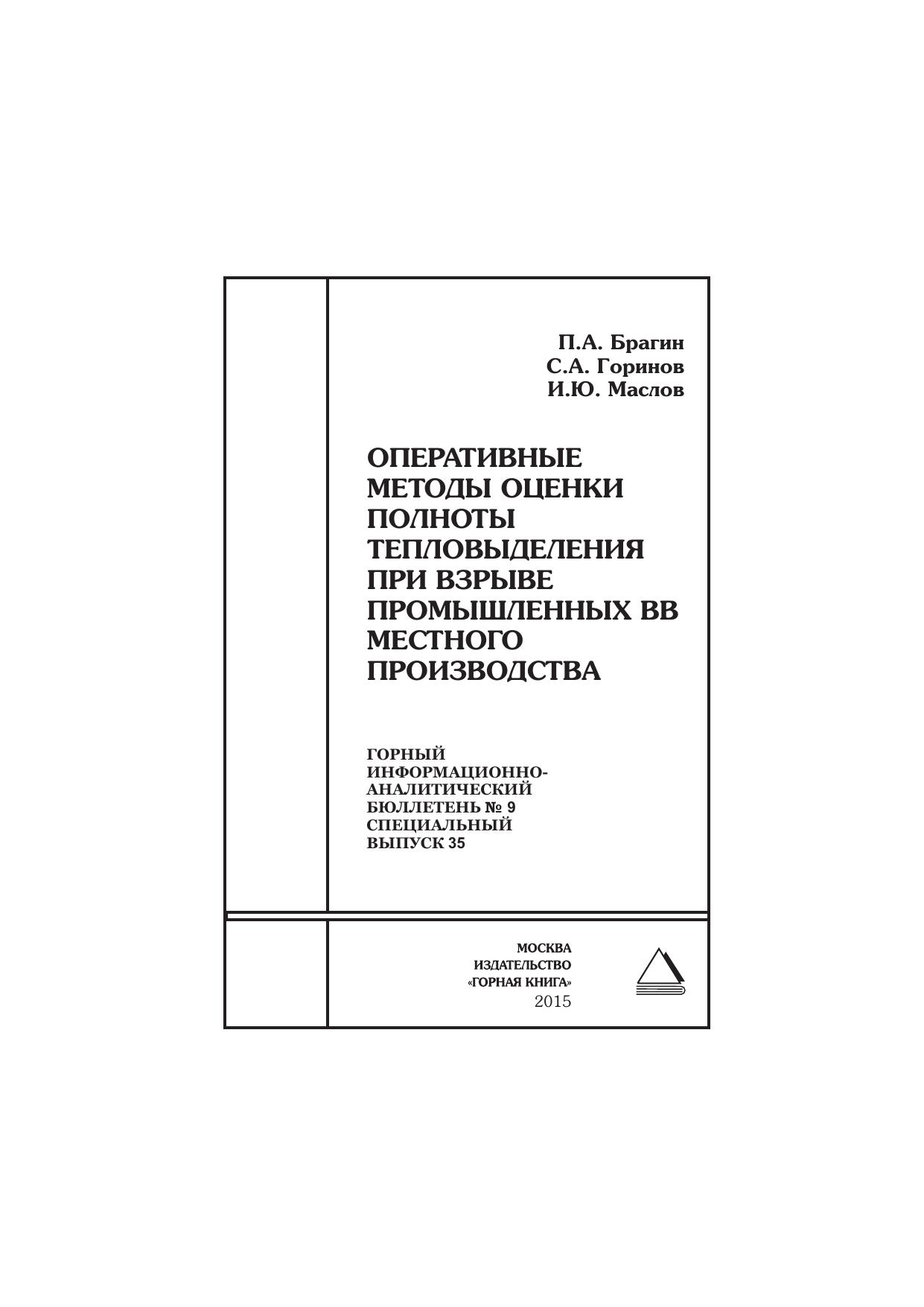 Оперативные методы оценки полноты тепловыделения при взрыве промышленных ВВ местного производства. Отдельные статьи: Горный информационно-аналитический бюллетень (научно-технический журнал)