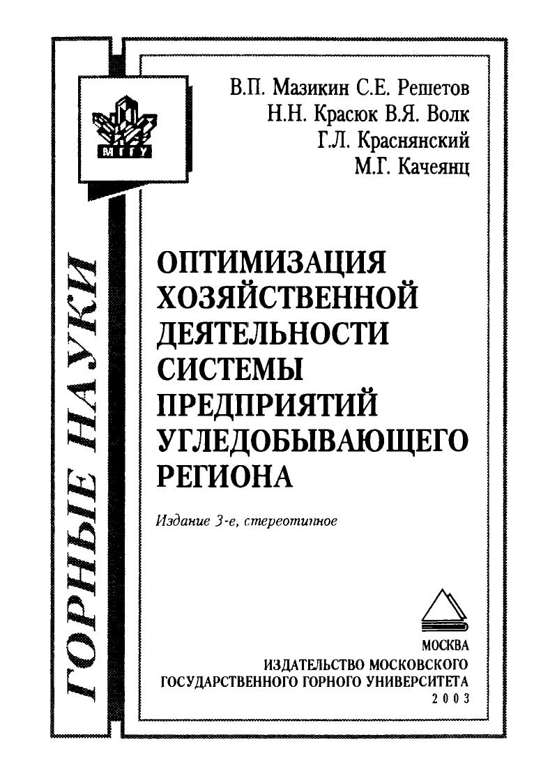 Изложены материалы по общей методологии совершенствования организационно-технической структуры системы предприятий угледобывающего региона. Приведена методика решения проблемы оптимизации хозяйственной деятельности региона. Даны конкретные решения по предприятиям АО «Ленинскуголь». Отдельные разделы написаны совместно с С.И. Горностаевым, С.Я. Романенко, А.В. Ремезовым, М.П. Новиковой. Для научных работников и специалистов горнодобывающих отраслей.