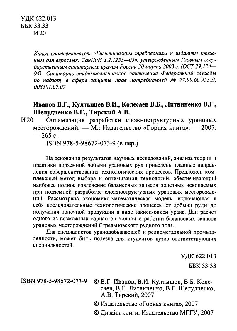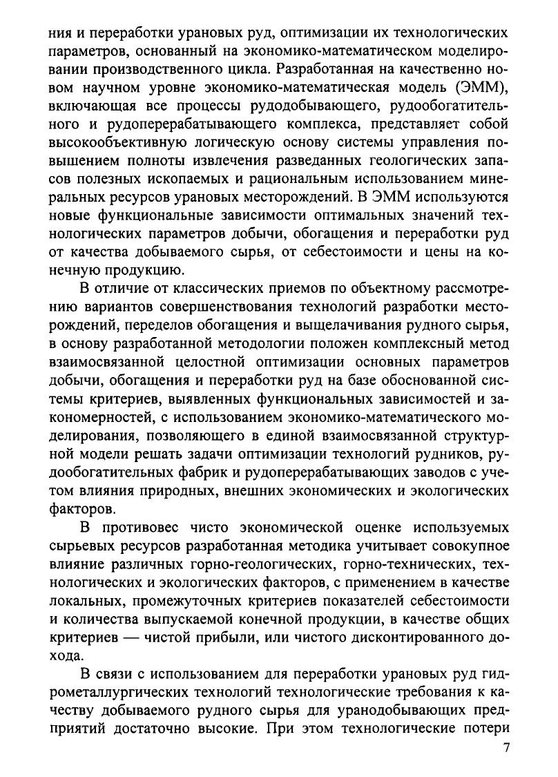 На основании результатов научных исследований, анализа теории и практики подземной добычи урановых руд приведены главные направления совершенствования технологических процессов. Предложен комплексный метод выбора и оптимизации технологий, обеспечивающий наиболее полное извлечение балансовых запасов полезных ископаемых при подземной разработке сложноструктурных урановых месторождений. Рассмотрена экономико-математическая модель, включающая в себя последовательные технологические процессы от добычи руды до получения конечной продукции в виде закиси-окиси урана. Дан расчет одного из возможных вариантов полной отработки балансовых запасов урановых месторождений Стрельцовского рудного поля. Для специалистов уранодобывающей и редкометалльной промышленности, может быть полезна для студентов вузов соответствующих специальностей.
