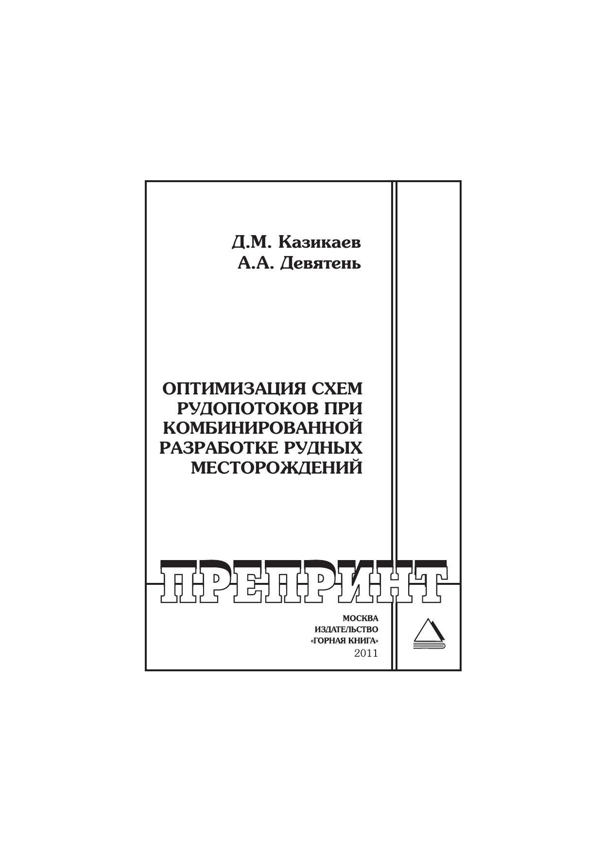 Оптимизация схем рудопотоков при комбинированной разработке рудных месторождений