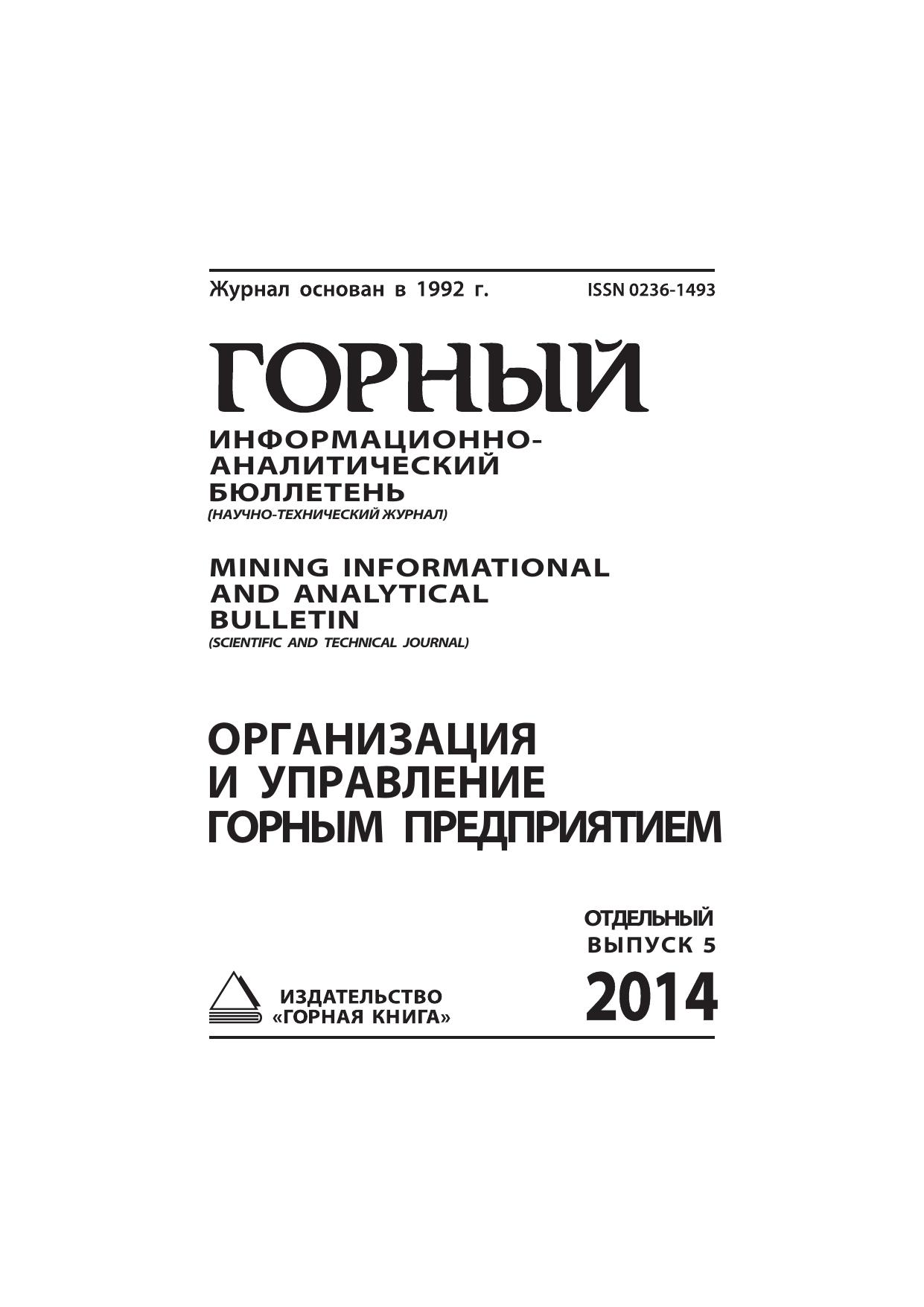 Организация и управление горным предприятием: Горный информационно-аналитический бюллетень (научно-технический журнал). Mining informational and analytical bulletin scientific and technical journal. Отдельные выпуск