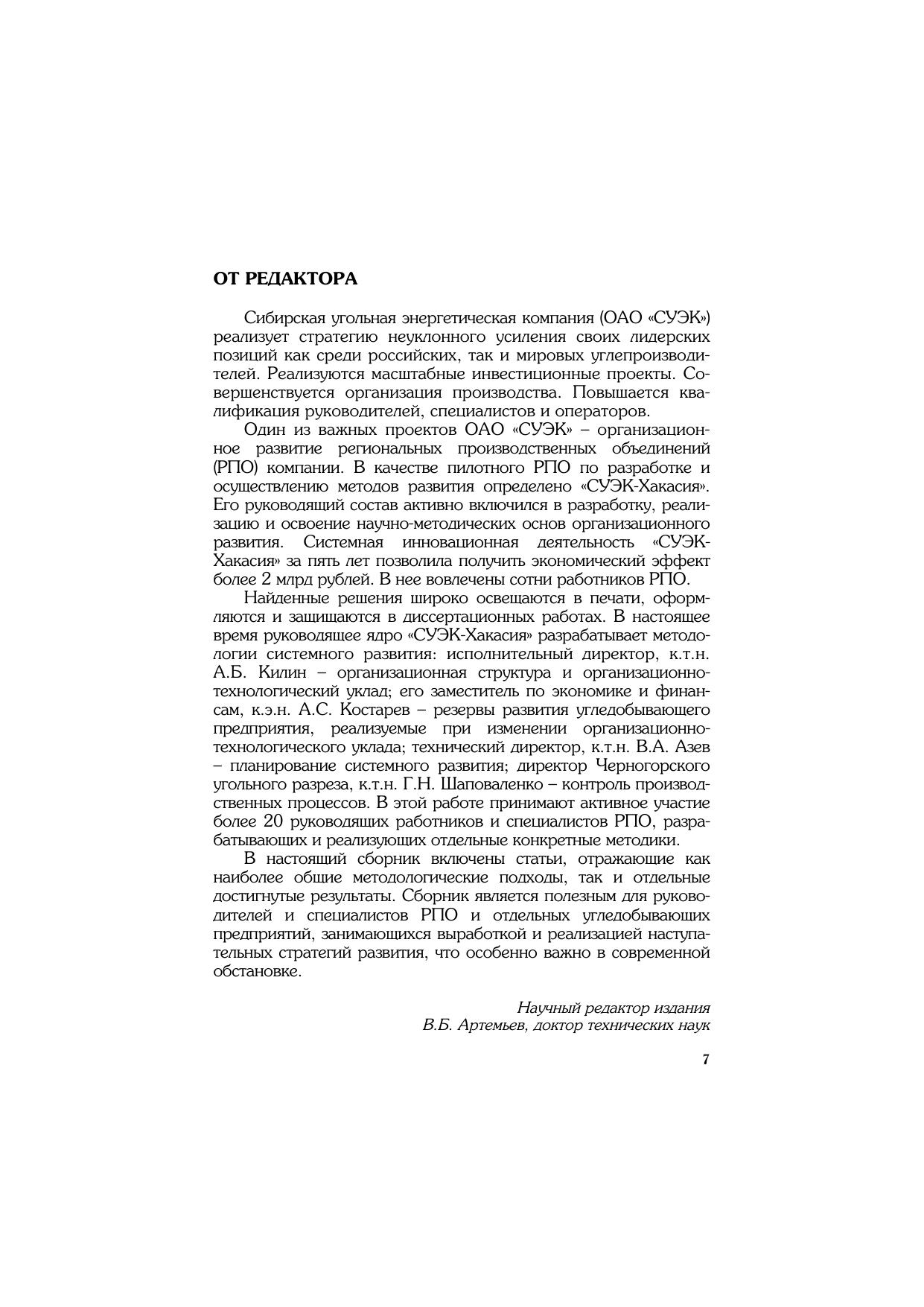 В сборнике представлен материал, подготовленный по результатам организационного развития регионального производственного объединения «СУЭК-Хакасия». Изложены методологические подходы к системному развитию, дано описание конкретных результатов по повышению безопасности и эффективности производства угледобывающих предприятий.