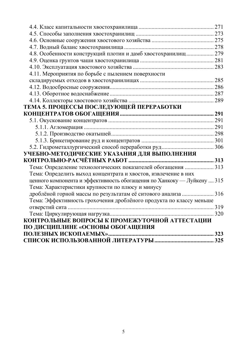 Учебное пособие посвящено изложению основ обогащения твёрдых полезных ископаемых. В нём последовательно изложены темы подготовительных, основных и вспомогательных процессов, используемых при их обогащении. Особое внимание в пособии уделено вопросам: предварительной концентрации добытой горной массы как рудоподготовительной операции перед основными процессами обогащения, радиометрического обогащения минерального сырья, организации хвостового хозяйства на горно-перерабатывающем предприятии, агломерации, производству окатышей и брикетированию руд и концентратов, гидрометаллургической переработки руд. В пособии приведены учебно-методические указания для выполнения контрольно-расчётных работ и перечень вопросов для подготовки к отчётности по данной дисциплине.