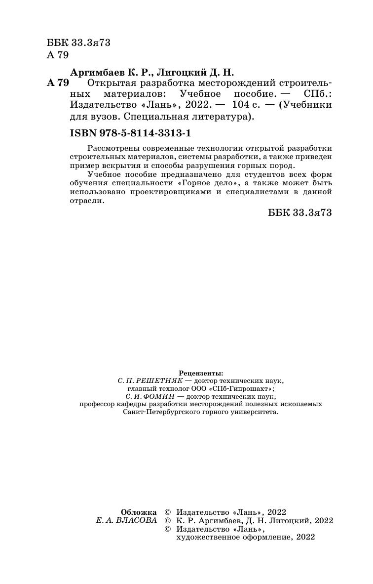 Рассмотрены современные технологии открытой разработки строительных материалов, системы разработки, а также приведен пример вскрытия и способы разрушения горных пород. Учебное пособие предназначено для студентов всех форм обучения специальности «Горное дело», а также может быть использовано проектировщиками и специалистами в данной отрасли.