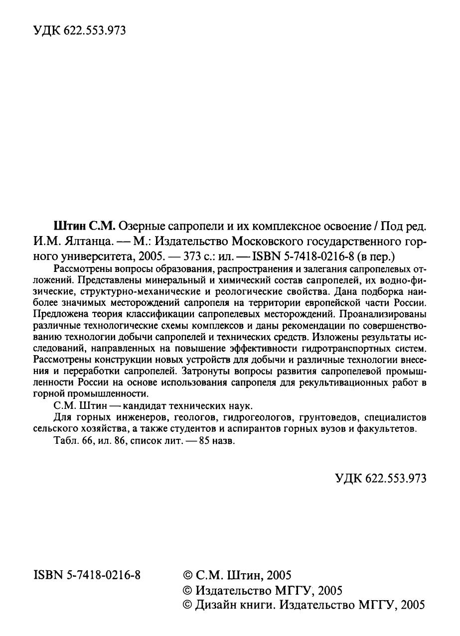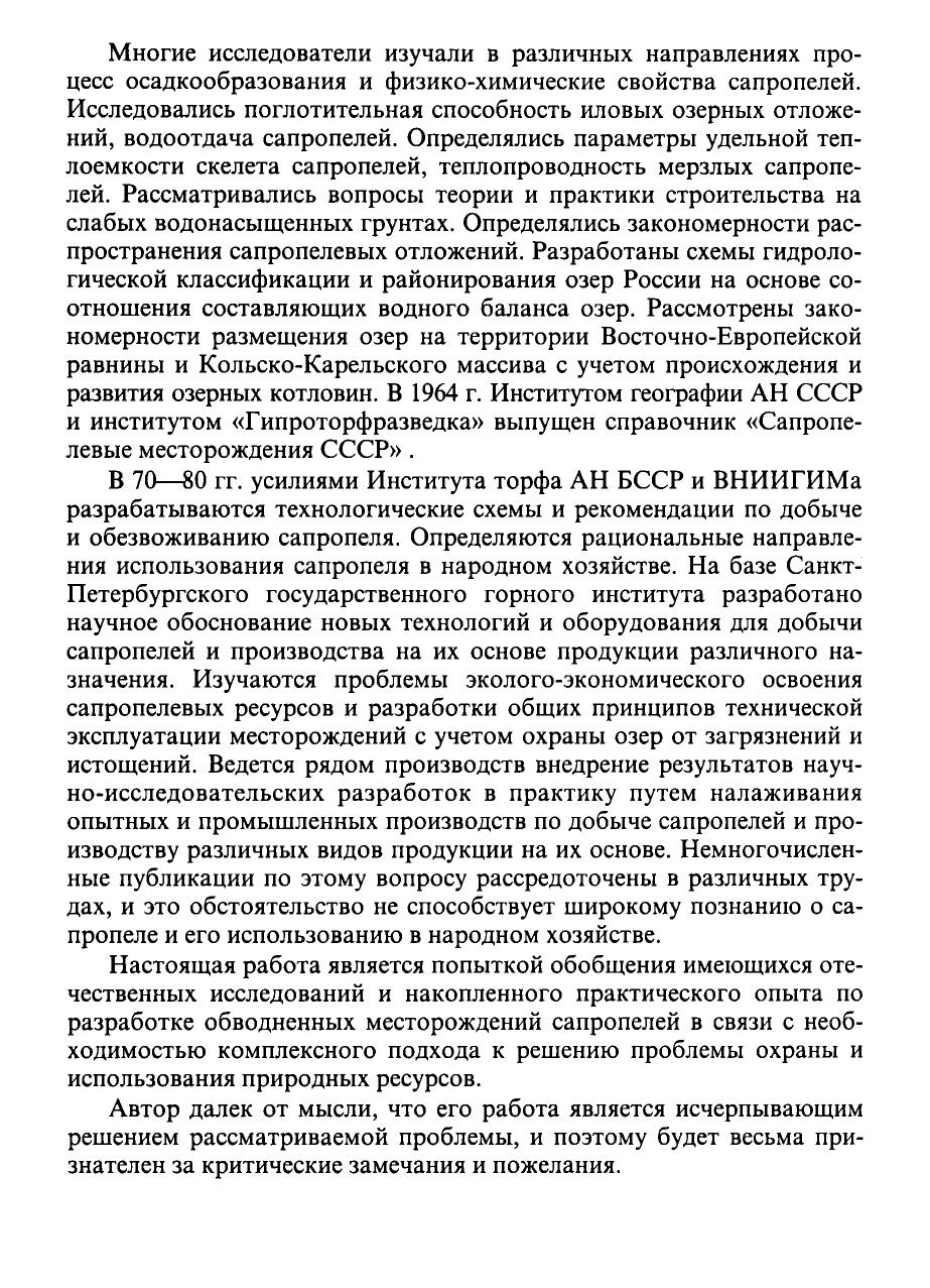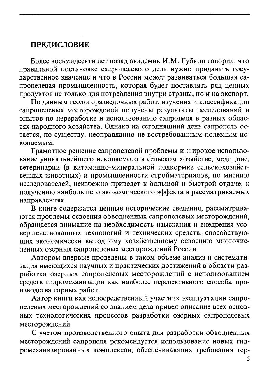 Рассмотрены вопросы образования, распространения и залегания сапропелевых отложений. Представлены минеральный и химический состав сапропелей, их водно-физические, структурно-механические и реологические свойства. Дана подборка наиболее значимых месторождений сапропеля на территории европейской части России. Предложена теория классификации сапропелевых месторождений. Проанализированы различные технологические схемы комплексов и даны рекомендации по совершенствованию технологии добычи сапропелей и технических средств. Изложены результаты исследований, направленных на повышение эффективности гидротранспортных систем. Рассмотрены конструкции новых устройств для добычи и различные технологии внесения и переработки сапропелей. Затронуты вопросы развития сапропелевой промышленности России на основе использования сапропеля для рекультивационных работ в горной промышленности. Для горных инженеров, геологов, гидрогеологов, грунтоведов, специалистов сельского хозяйства, а также студентов и аспирантов горных вузов и факультетов.