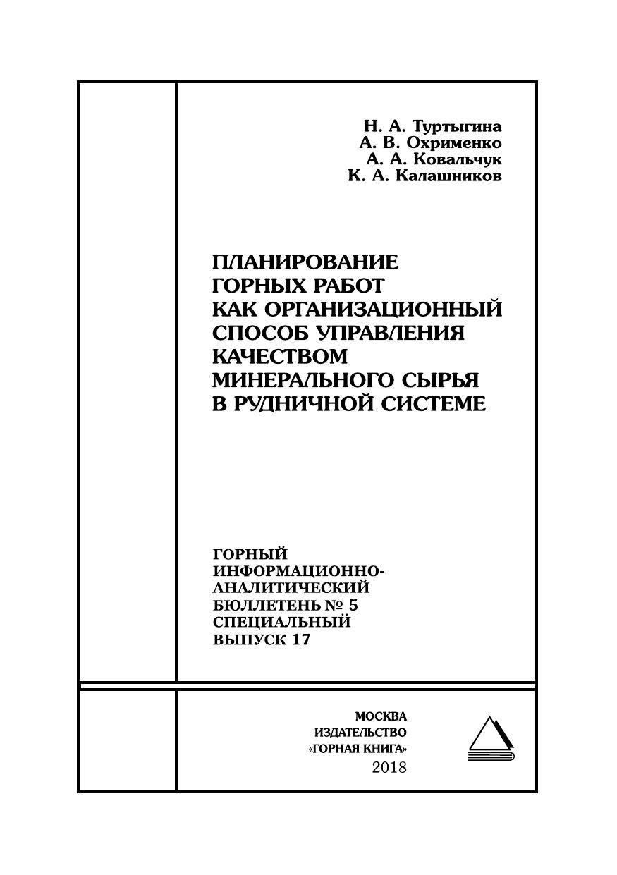 Планирование горных работ как организационный способ управления качеством минерального сырья в рудничной системе. Горный информационно-аналитический бюллетень (научно-технический журнал). № 5