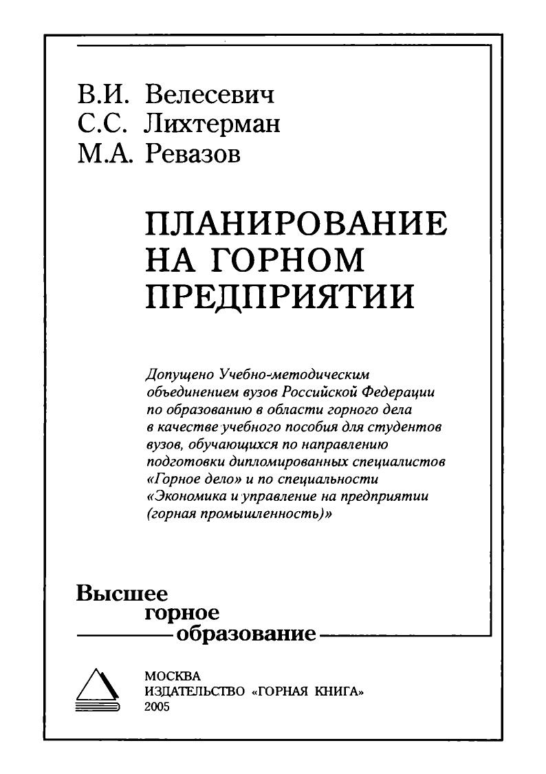 Гриф: Допущено Учебно-методическим объединением вузов Российской Федерации по образованию в области горного дела в качестве учебного пособия для студентов вузов, обучающихся по направлению подготовки дипломированных специалистов «Горное дело» и по специальности «Экономика и управление на предприятии (горная промышленность)».