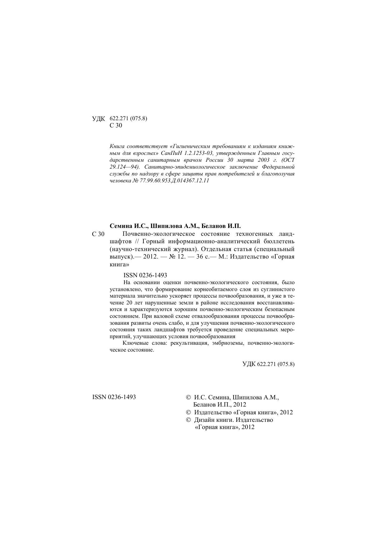 ISBN 0236-1493; 2012 г.
