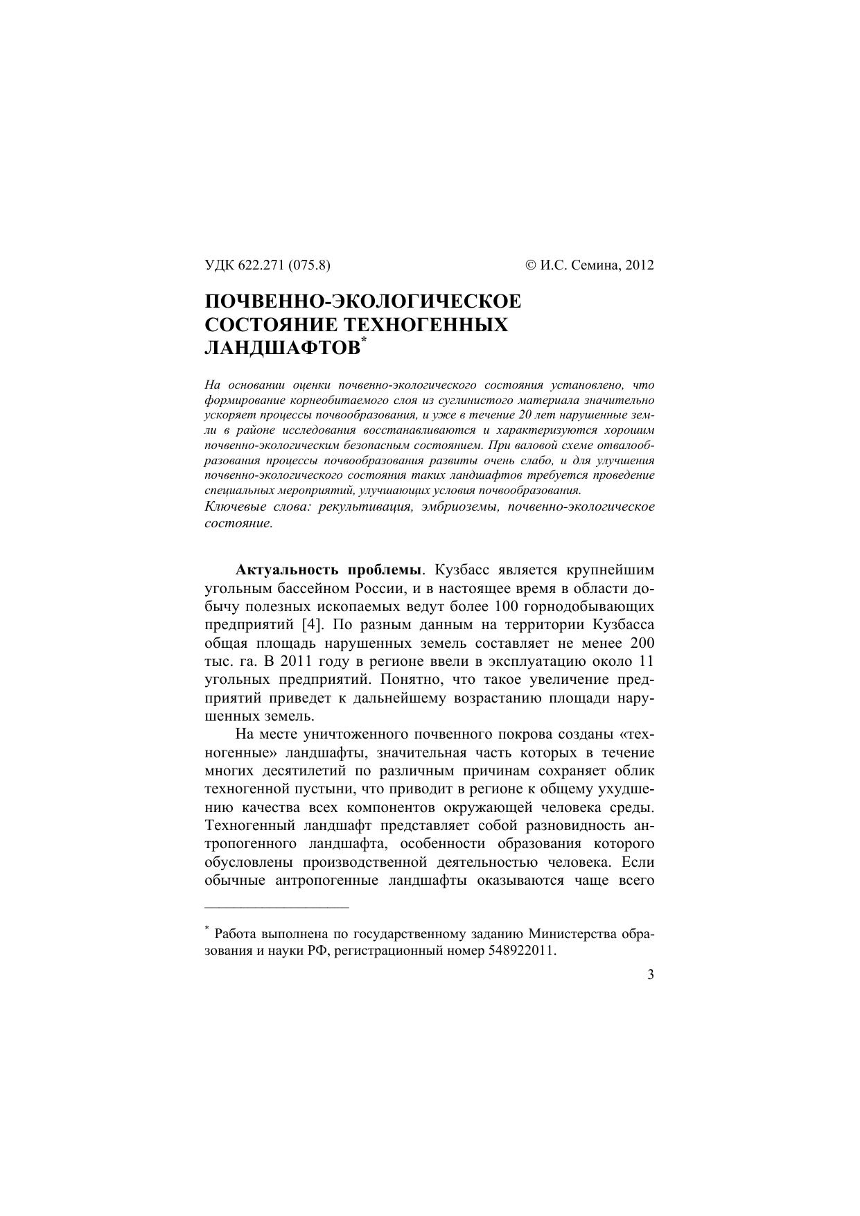 Почвенно-экологическое состояние техногенных ландшафтов
