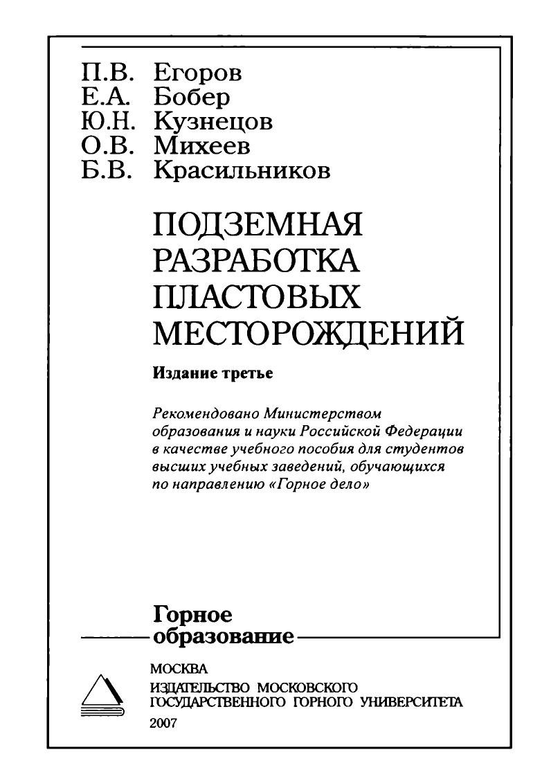 Гриф: Рекомендовано Министерством образования и науки Российской Федерации в качестве учебного пособия для студентов высших учебных заведений, обучающихся по направлению «Горное дело»