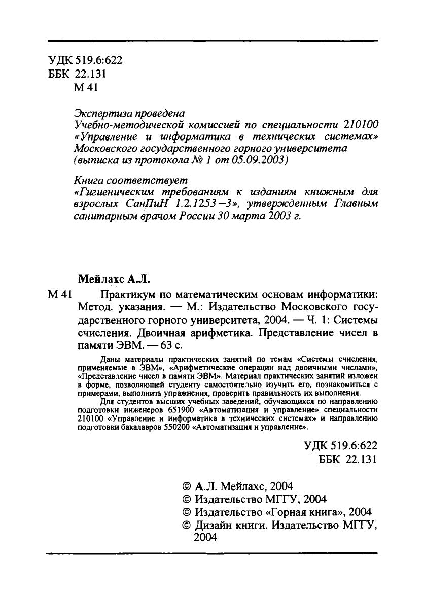 Практикум по математическим основам информатики: Метод. указания. Ч.1.:Системы счисления. Двоичная арифметика. Представление чисел в памяти ЭВМ
