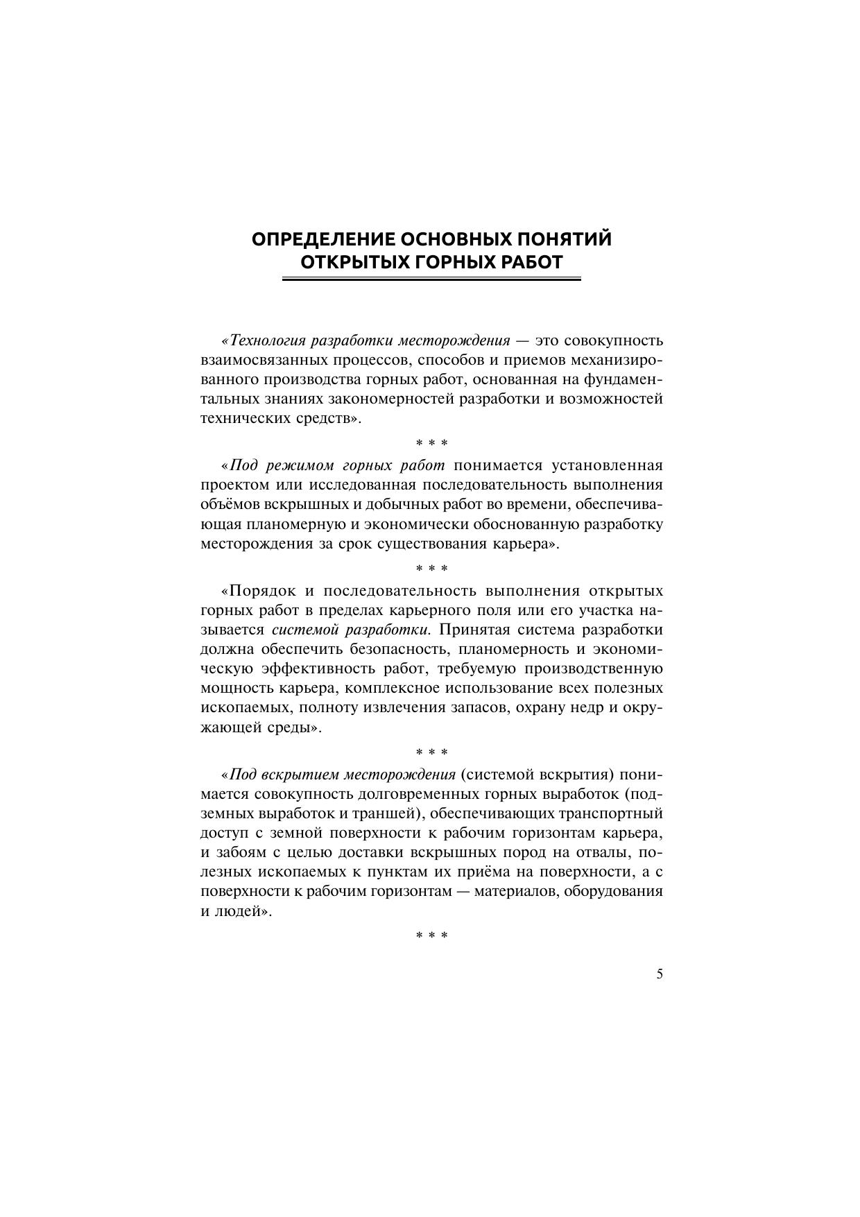 Для студентов вузов, обучающихся по специализации «Открытые горные работы» направления подготовки дипломированных специалистов «Горное дело». Может быть использована студентами других специальностей, а также инженерно-техническими работниками предприятий и организаций, занимающихся горными работами.