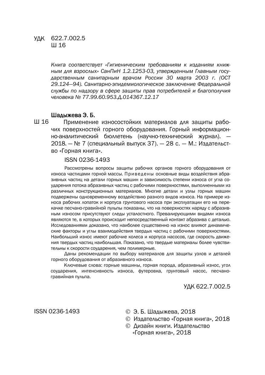 Применение износостойких материалов для защиты рабочих поверхностей горного оборудования. Горный информационно-аналитический бюллетень (научно-технический журнал). № 7