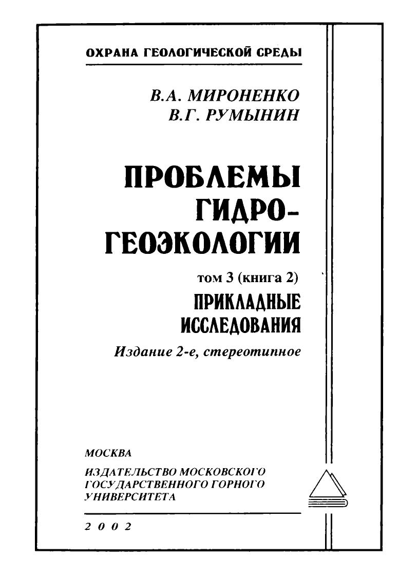Проблемы гидрогеоэкологии. Прикладные исследования. В 3-х книгах Т.3 (2)