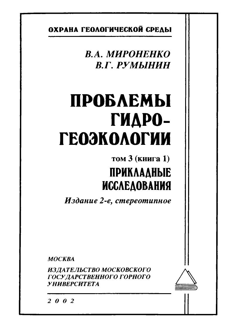 Проблемы гидрогеоэкологии. Прикладные исследования. В 3-х книгах Т.3(1)