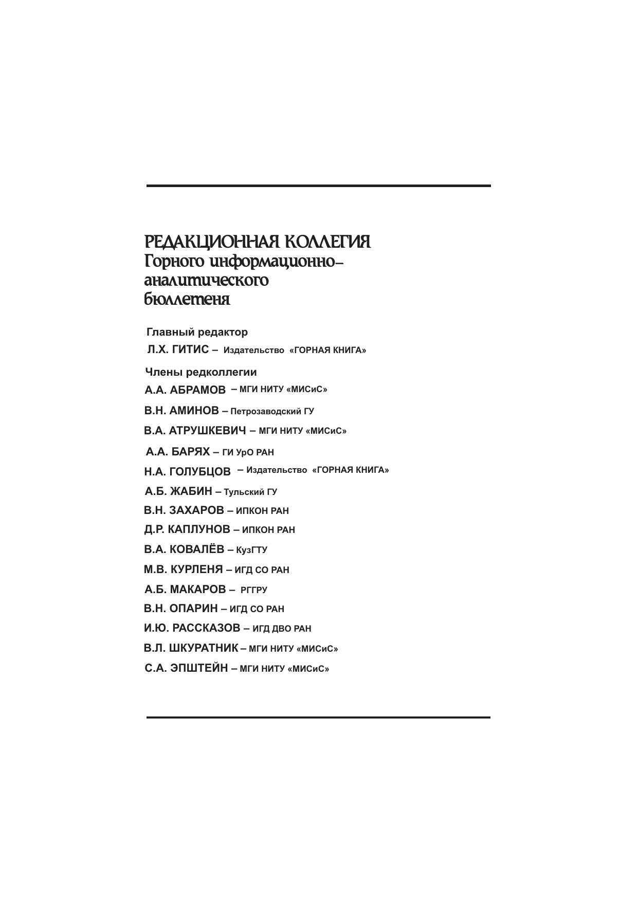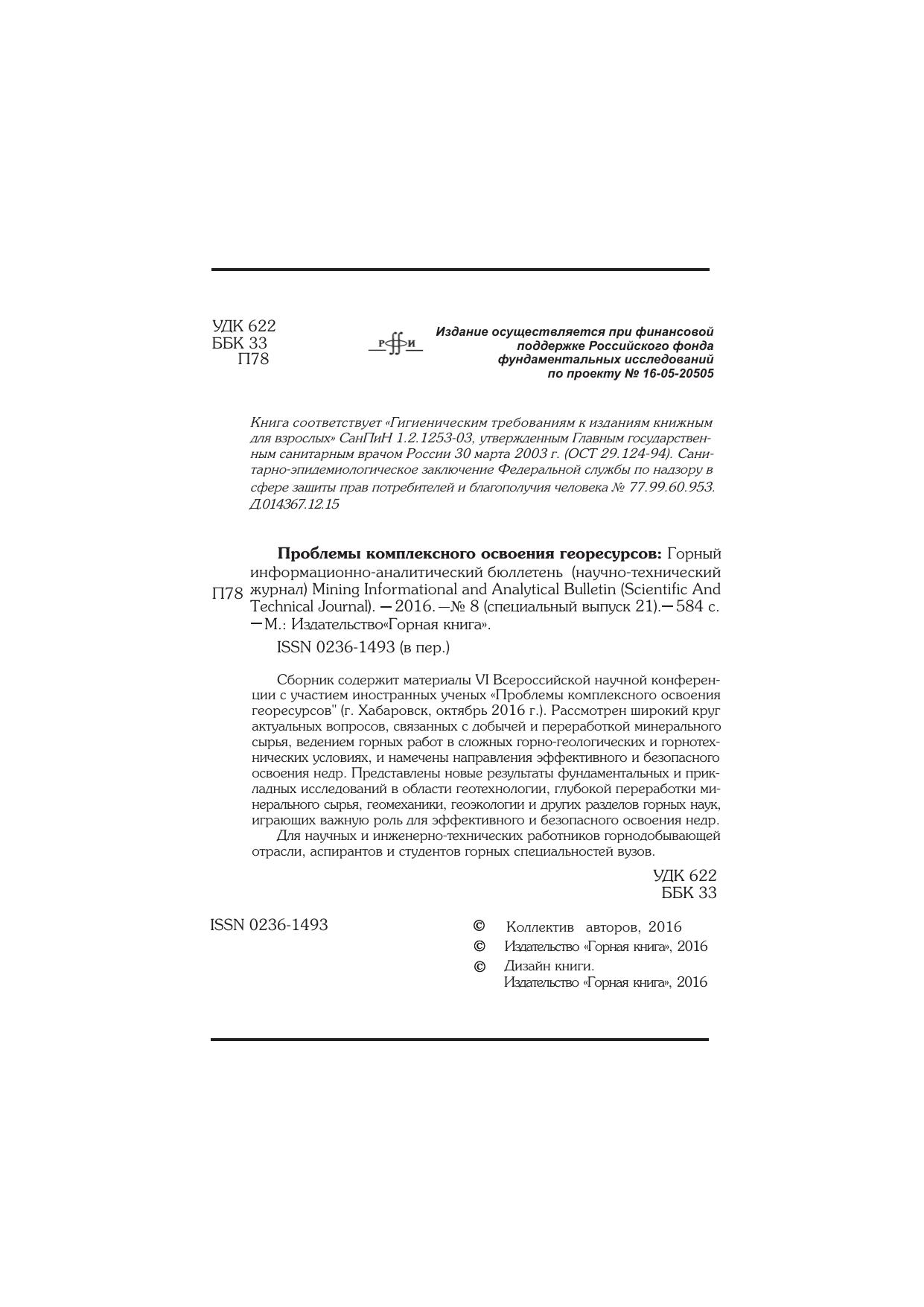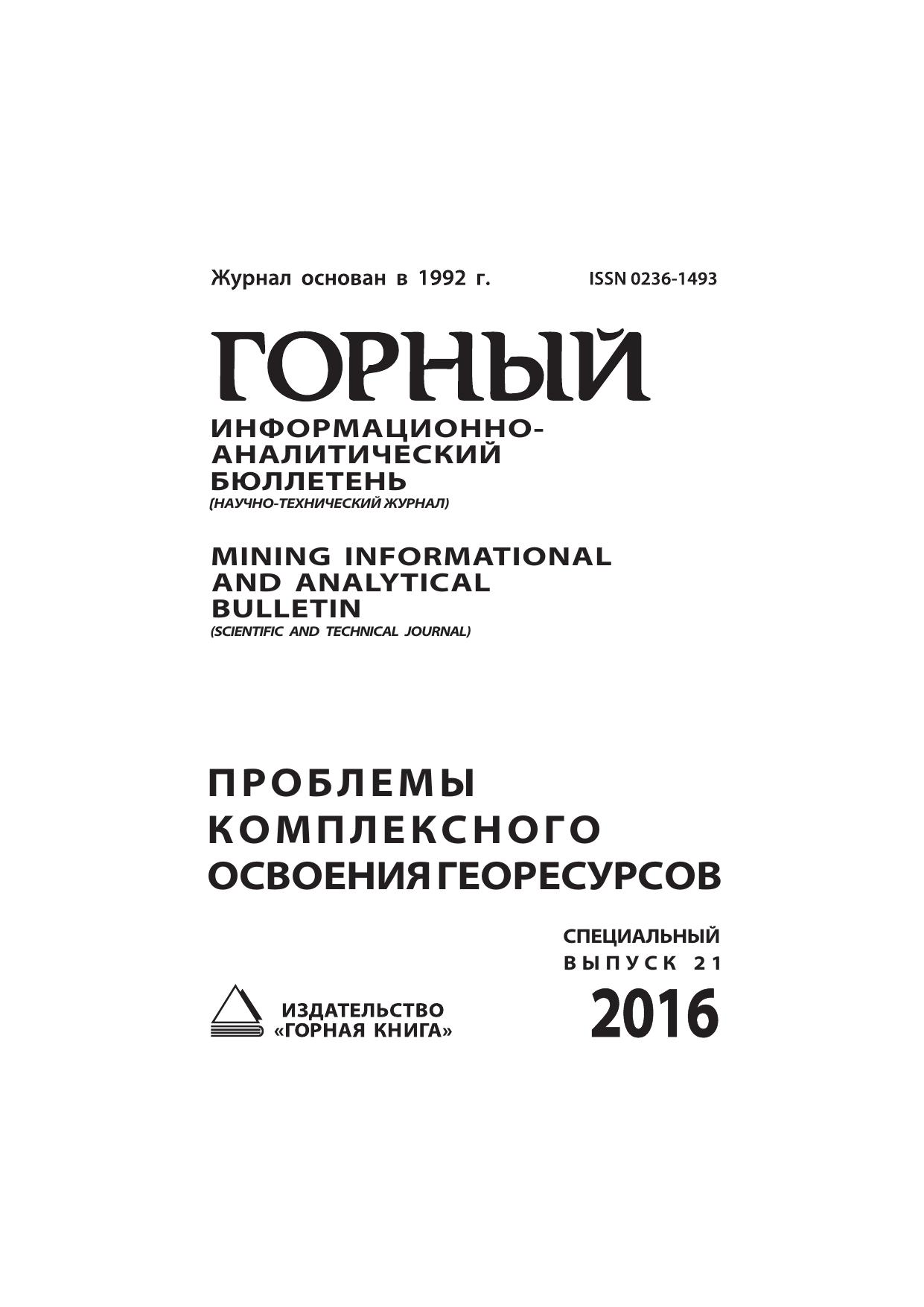 Проблемы комплексного освоения георесурсов: Горный информационно-аналитический бюллетень (научно-технический журнал) Mining Informational and Analytical Bulletin (Scientific and Technical Journal)