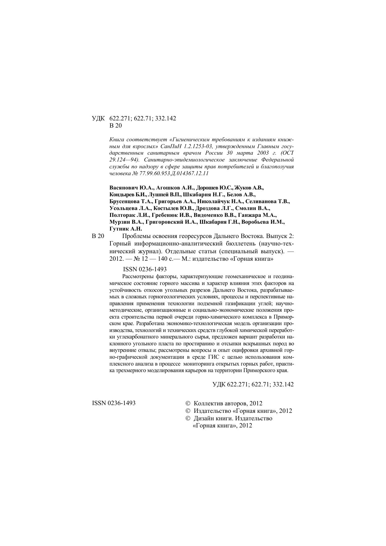 ISBN 0236-1493; 2012 г.