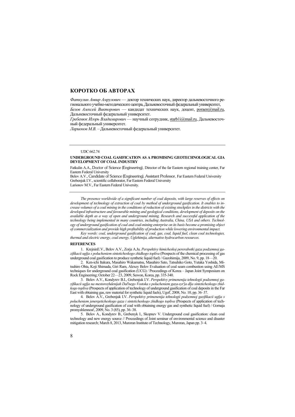 Изучен российский и мировой опыт (Австралии, КНР, США и др.) применения технологии подземной газификации угля, проведён анализ экспертных оценок специалистов в области угольной промышленности, связанных с внедрением технологий глубокой переработки угля, предложена технология подземной газификации угля, обеспечивающая повышение срока эксплуатации подземного газогенератора. Приведен анализ эколого-планировочного решения размещения сжиженного природного газа «СПГ-Владивосток». Рассмотрены вопросы построения откосов дорог, проводимых по склону топографической поверхности определенной местности, при проектировании карьеров по добычи полезного ископаемого открытым способом.