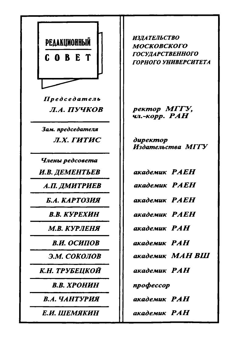Гриф: Допущено Учебно-методическим объединением вузов Российской Федерации по образованию в области горного дела в качестве учебного пособия для студентов вузов, обучающихся по специальностям «Подземная разработка .честорождений полезных ископаемых» и «Шахтное и подземное строительство» направления подготовки дипломированных специалистов «Горное дело»