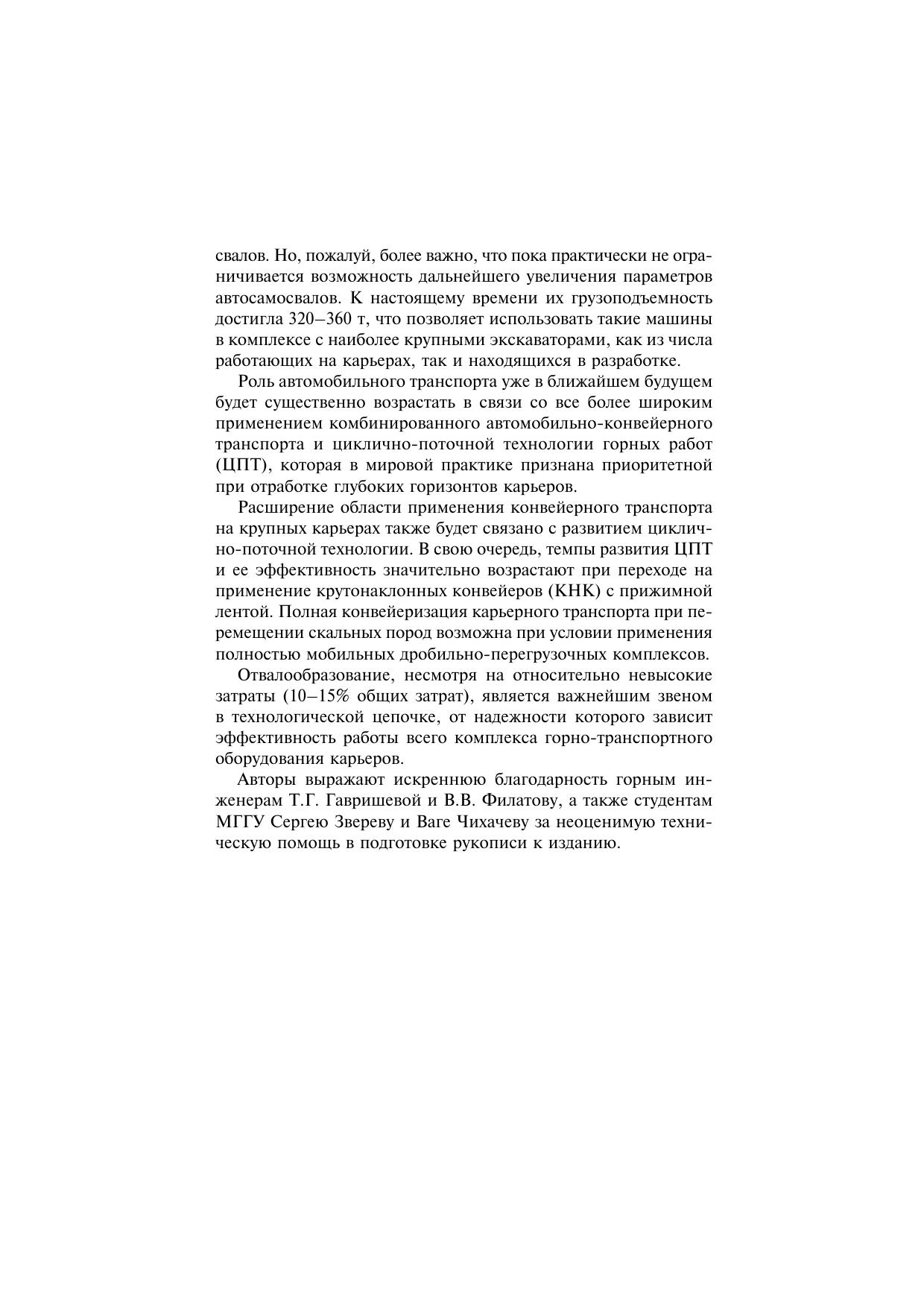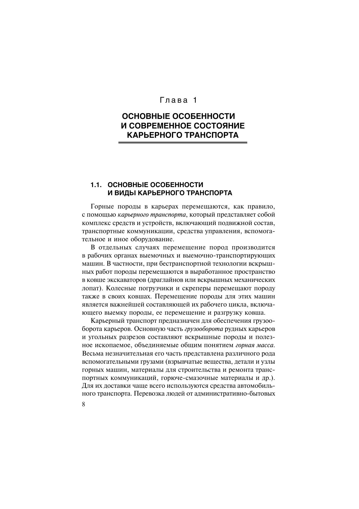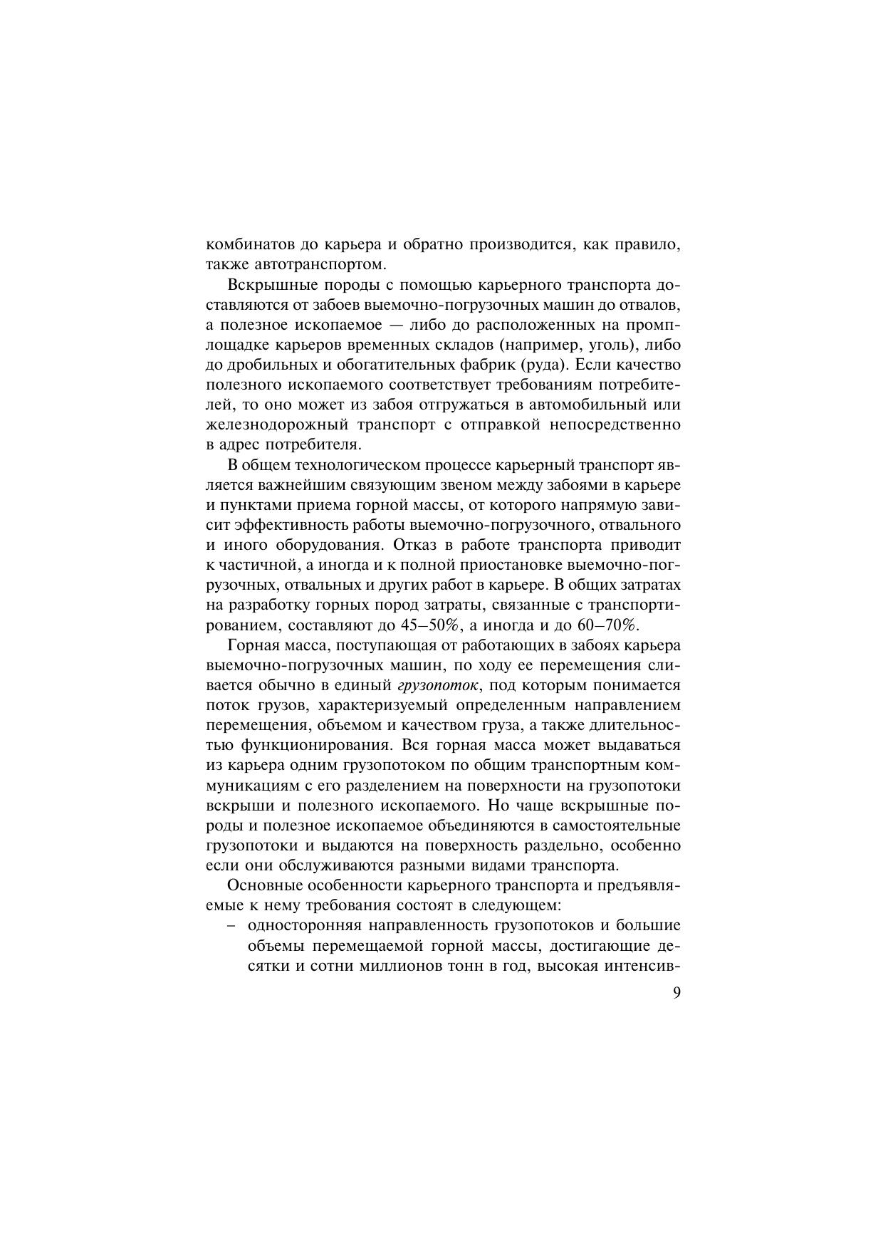 Изложены сведения об особенностях карьерного транспорта, его современном состоянии и тенденциях развития. Дана технологическая характеристика основных видов транспорта и условий их применения. Приведены данные о важнейших технологических параметрах подвижного состава, параметрах, устройстве и схемах развития транспортных коммуникаций в карьерах и на рабочих уступах. Дано описание схем и организации транспортного обслуживания выемочно-погрузочных и отвальных машин. Приведена методика расчета производительности транспортного оборудования и потребности в подвижном составе. Описаны способы отвалообразования, приведены данные о параметрах отвалов и методах их расчета. Н.Я. Репин — д-р техн. наук, проф. кафедры «Технология, механизация и организация открытых горных работ» МГГУ; Л.Н. Репин — д-р экон. наук, руководитель Департамента топливообеспечения ОАО «Энергетические системы Востока», и.о. проф. кафедры «Технология, механизация и организация открытых горных работ» МГГУ. Для студентов вузов, обучающихся по специальности «Открытые горные работы» направления подготовки «Горное дело».