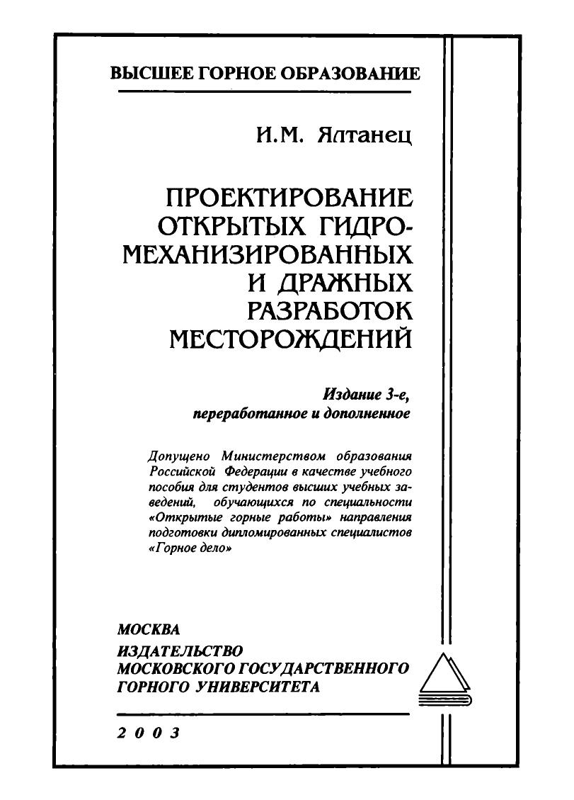 Гриф: Допущено Министерством образования Российской Федерации в качестве учебного пособия для студентов высших учебных заведений, обучающихся по специальности «Открытые горные работы» направления подготовки дипломированных специалистов «Горное дело»