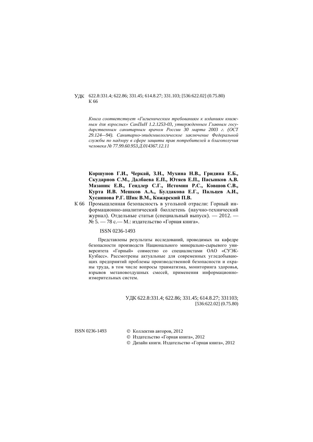 ISBN 0236-1493; 2012 г.