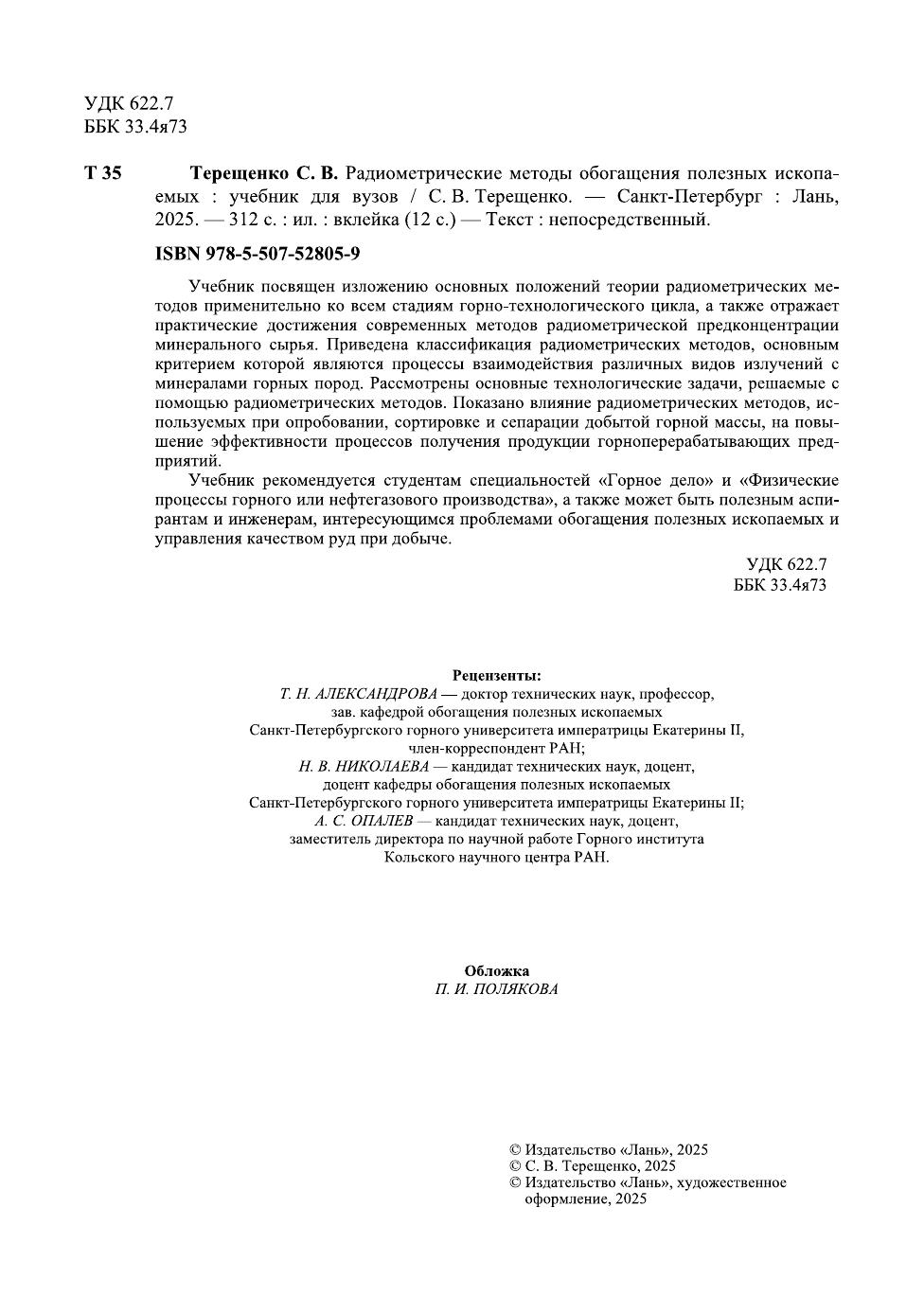 Учебник посвящен изложению основных положений теории радиометрических методов применительно ко всем стадиям горнотехнологического цикла, а также отражает практические достижения современных методов радиометрической предконцентрации минерального сырья. Приведена классификация радиометрических методов, основным критерием которой являются процессы взаимодействия различных видов излучений с минералами горных пород. Рассмотрены основные технологические задачи, решаемые с помощью радиометрических методов. Показано влияние радиометрических методов, используемых при опробовании, сортировке и сепарации добытой горной массы, на повышение эффективности процессов получения продукции горно-перерабатывающих предприятий. Учебник рекомендуется студентам специальностей «Горное дело» и «Физические процессы горного или нефтегазового производства», а также может быть полезным аспирантам и инженерам, интересующихся проблемами обогащения полезных ископаемых и управления качеством руд при добыче.